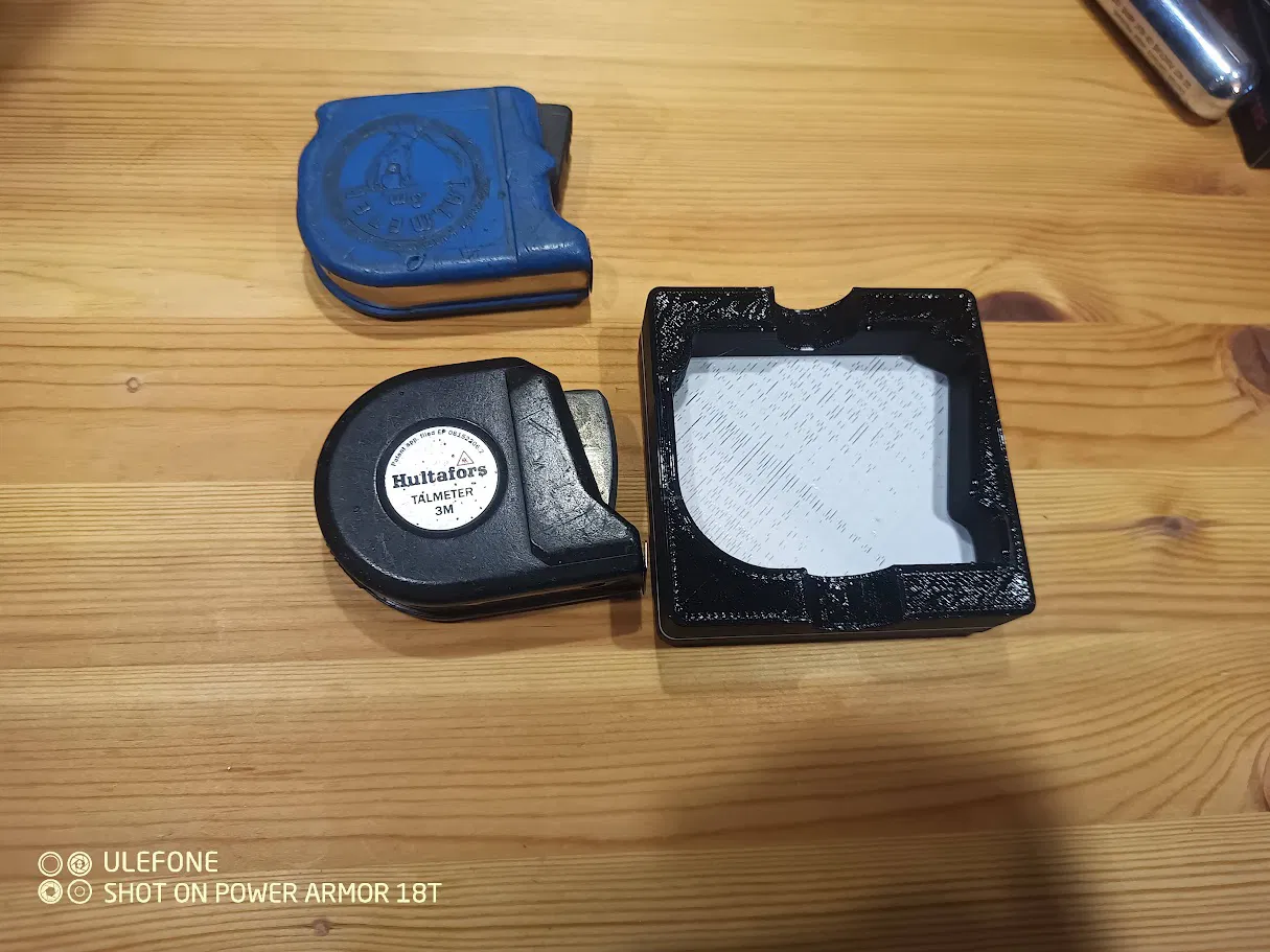 Khay/giá đỡ tương thích Gridfinity cho thước cuộn Talmeter 3m, dùng vừa cho cả phiên bản cũ lẫn phiên bản mới.