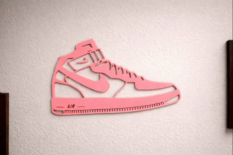 Mang văn hoá sneaker lên thẳng tường nhà bạn. Mẫu wall art lấy cảm hứng từ AF1 Mid này có thiết kế cutout tối giản, gọn gàng, làm nổi bật dáng silhouette kinh điển mà không rối mắt. In 3D dạng một mảnh liền, treo áp tường nhìn sắc nét, hoặc kê spacer để tạo thêm chiều sâu và đổ bóng.