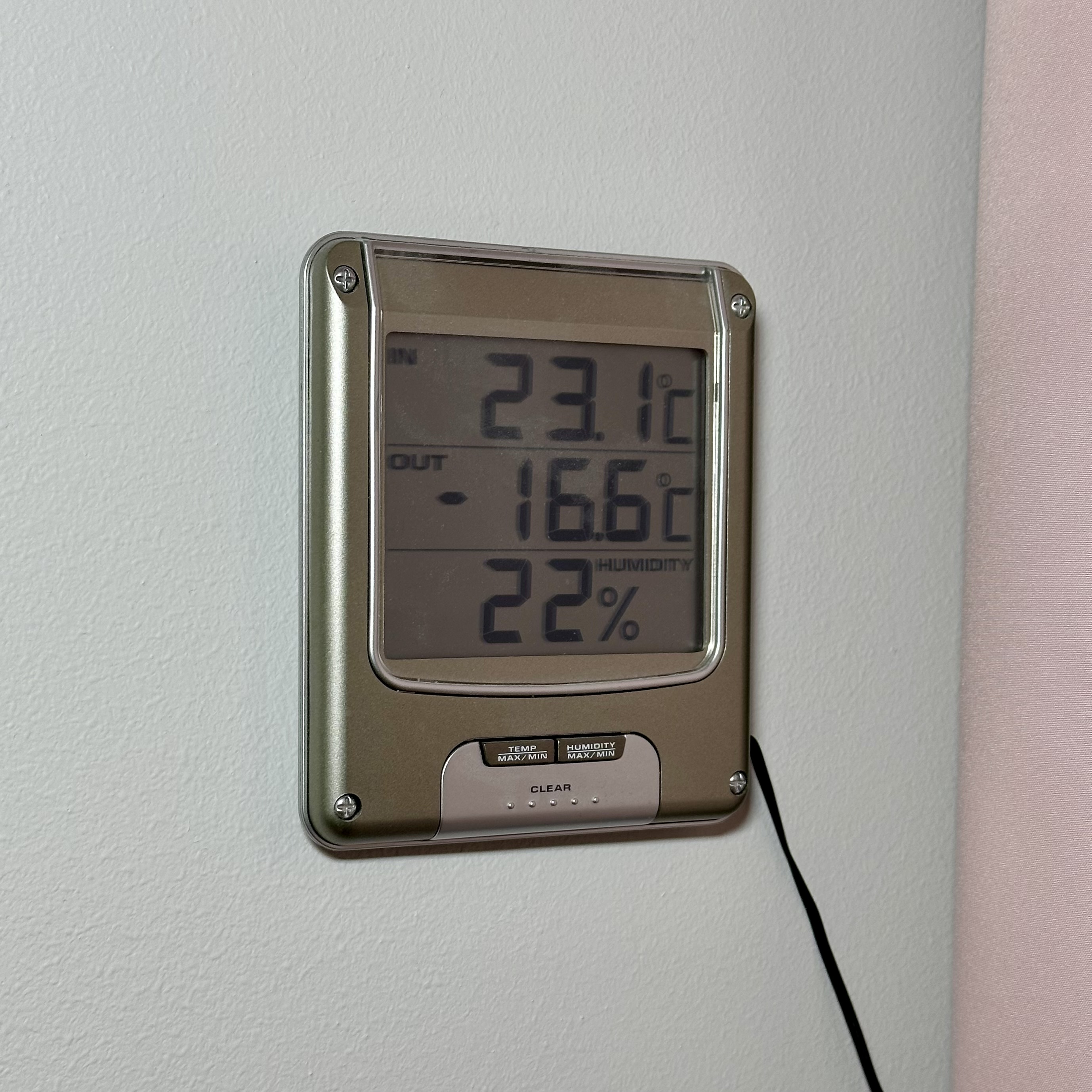 Trời lạnh cóng và mình muốn gắn cái nhiệt kế lên chỗ dễ nhìn hơn, để khỏi “ra ngoài là toi”. Vậy nên mình làm cái móc đơn giản này để treo/gắn mấy món kiểu vậy bằng băng keo hai mặt 18mm. Phần lưng có vát nhẹ (chamfer), nên khi cần gỡ khỏi tường thì vẫn có thể cạy ra được.
