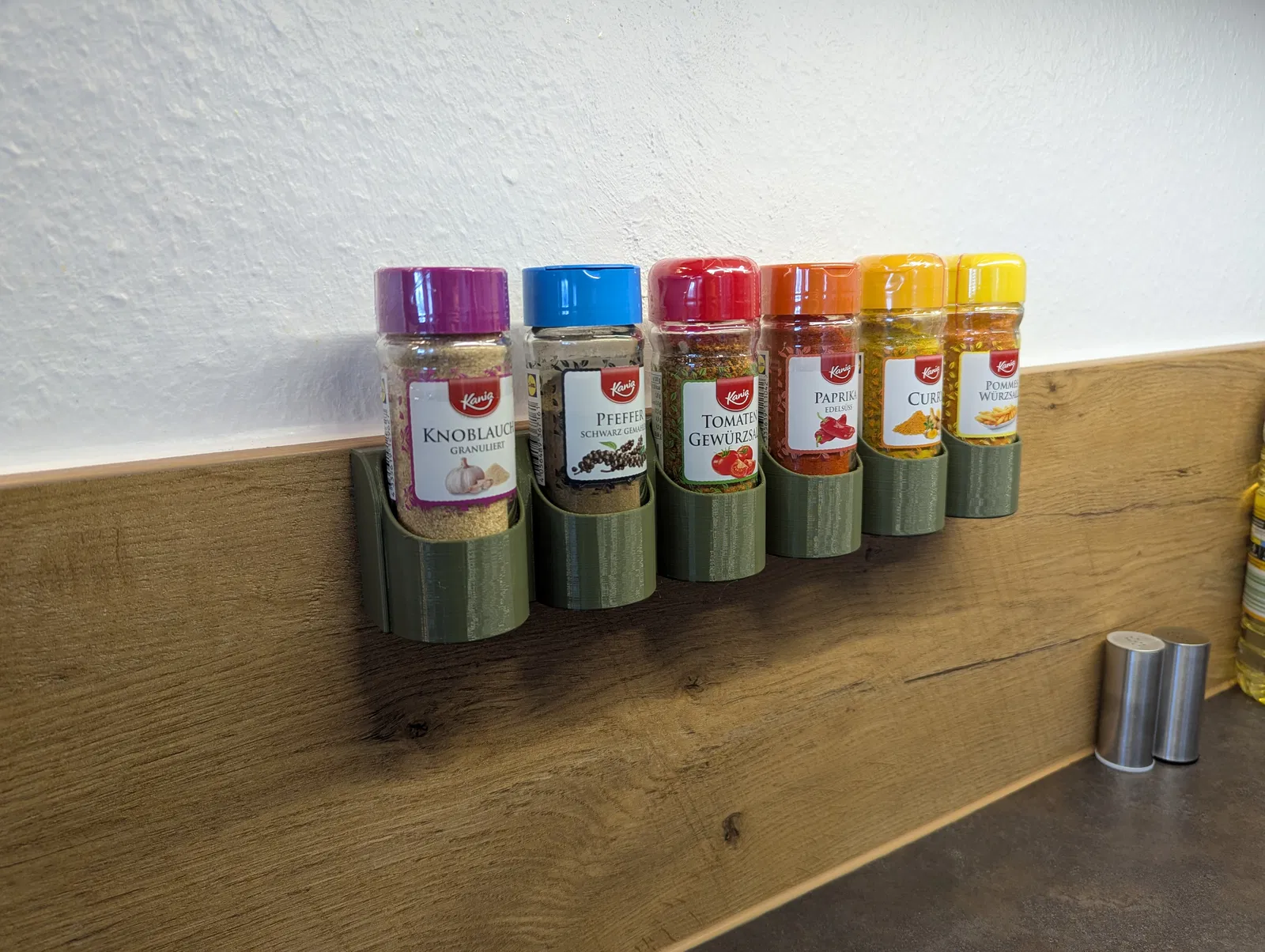 Giá đỡ cho bộ rắc muối và tiêu PLATS của IKEA (802.336.75) và các loại hũ gia vị phổ biến khác mua ở siêu thị (đường kính 44mm).