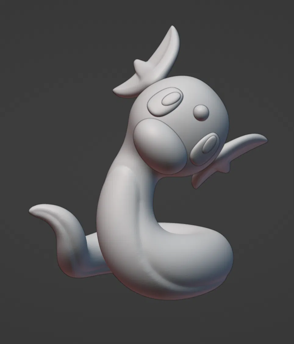 Mẫu Dratini do mình tự làm, được tách thành nhiều phần để dễ in nhiều màu cho từng chi tiết mà không cần sơn. Có kèm thêm phiên bản 1 khối. Tổng chiều cao khoảng 10cm.