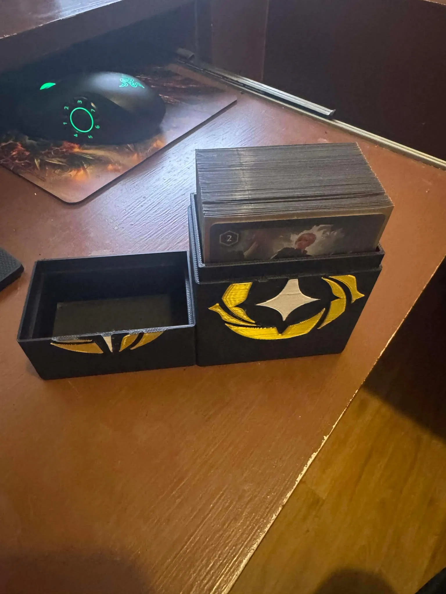 Một Deck box Lorcana đơn giản, in nhiều màu. Mình dùng Sunlu PLA Plus 2.0 màu đen, trắng và Sunlu Silk PLA Plus Light Gold để in bản của mình.