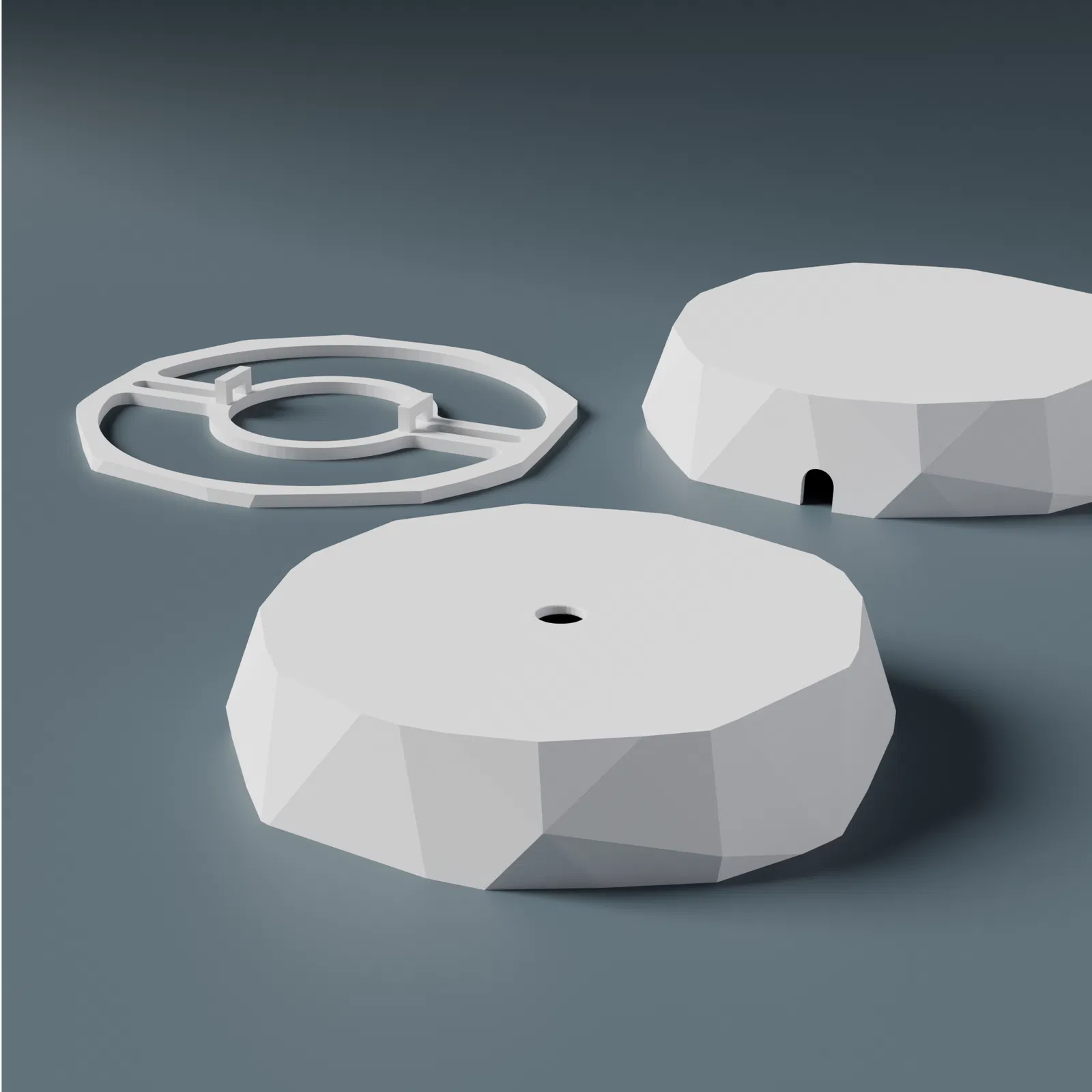 Nắp che cáp cho đèn trần với cơ chế lắp snap-in giữa hai phần, không cần dùng keo. Lưu ý nên scale phần mounting plate tăng nhẹ (ví dụ +0,1% mọi hướng) để khớp chặt hơn khi lắp.