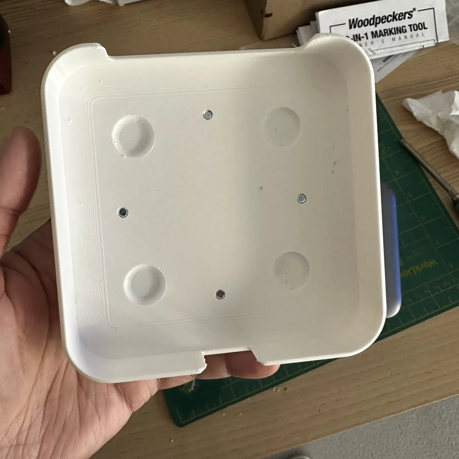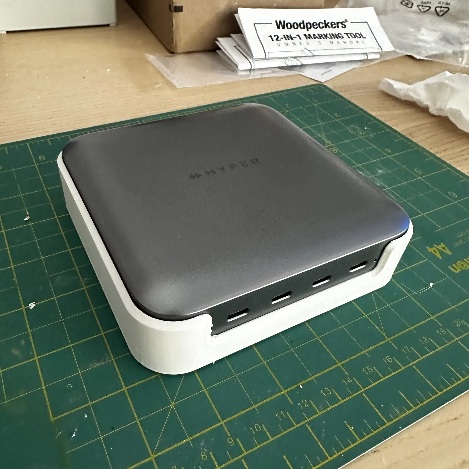 Điều này cho phép tôi treo trung tâm Thunderbolt của mình ở mặt sau màn hình 5K của tôi có các khe cắm lỗ khóa. Sử dụng các ốc vít 4 m5x5mm làm chốt cho các khe lỗ khóa.