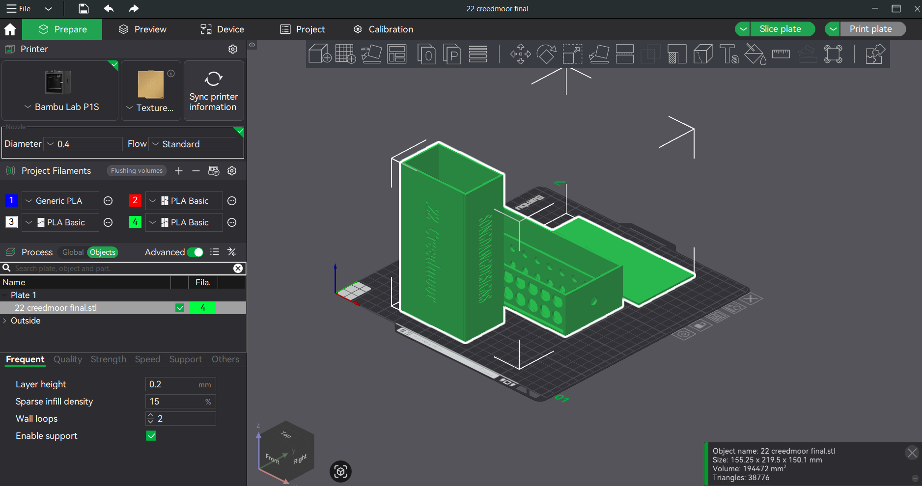 Infill: 15% (25% nếu cần bền hơn)