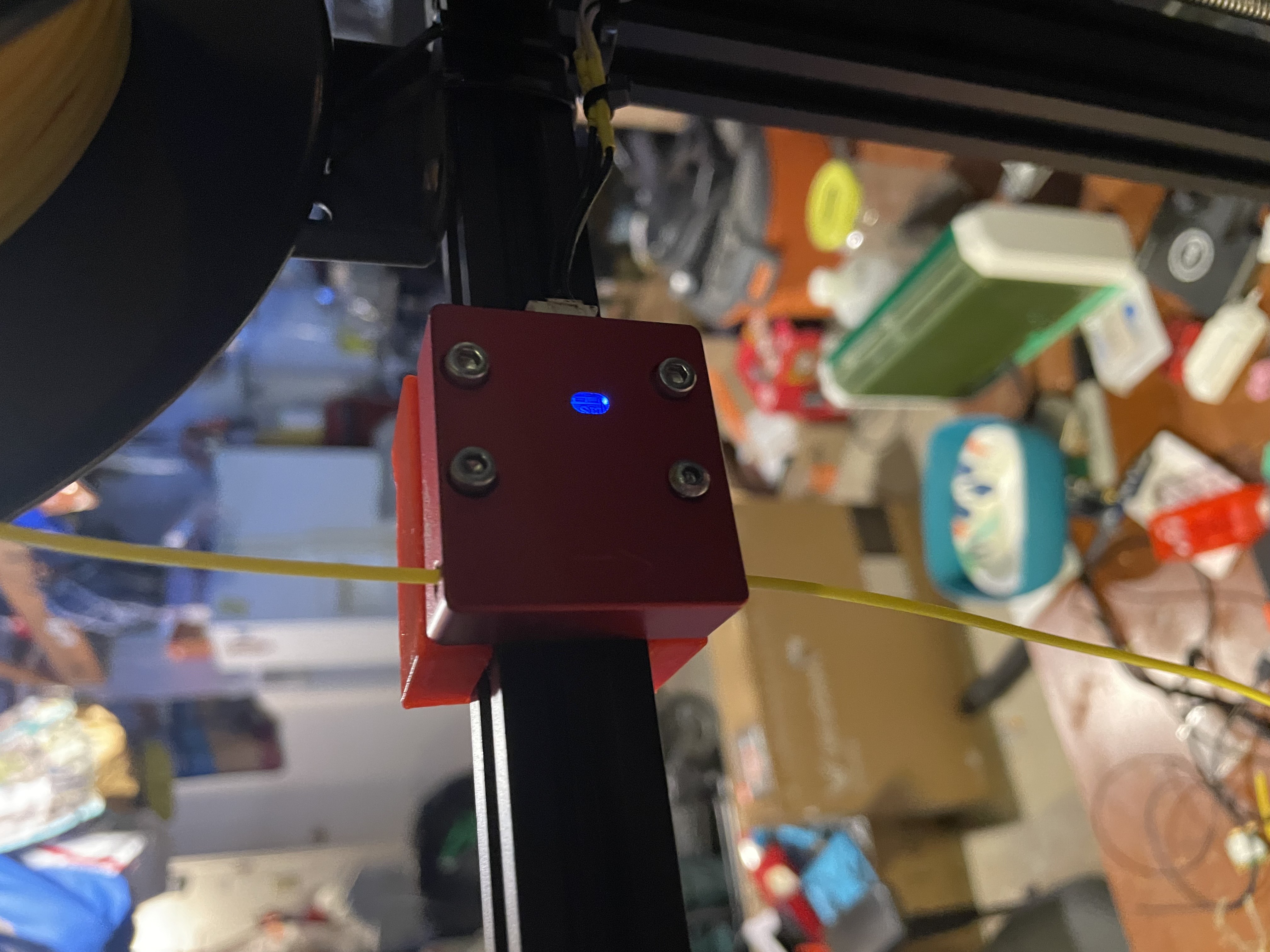 Chỉ cần trượt/đút vào thanh nhôm định hình 2020 (20x20) là xài được; lực kẹp từ filament sensor sẽ giữ chặt ngàm, không cần thêm ốc hay phụ kiện gì.