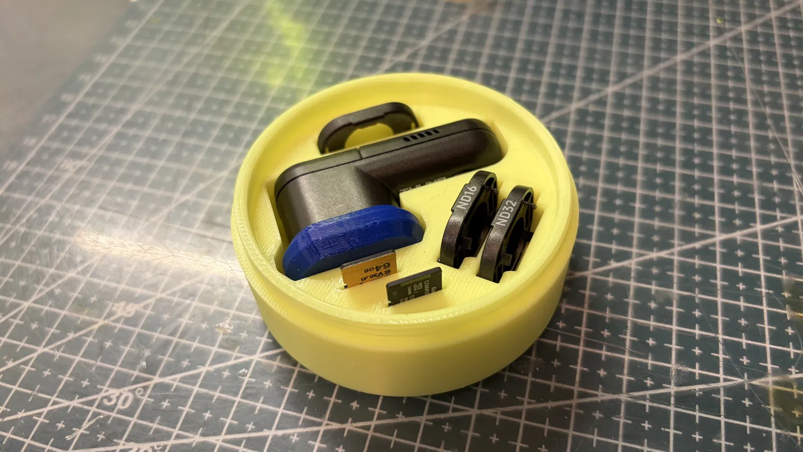 Hộp bảo vệ dành cho camera RunCam Thumb Pro, đựng vừa camera, miếng bảo vệ lens, bộ 3 ND filters và 2 thẻ micro SD. Bộ file có kèm miếng bảo vệ lens in bằng TPU.