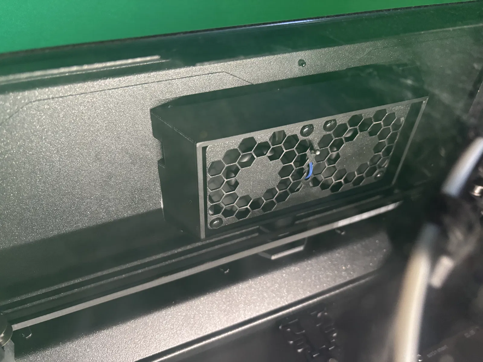 Miếng guard cho quạt exhaust bên trong Core One L, giúp ngăn dây nguồn/data và ống PTFE của Nextruder bị trùng xuống rồi vướng vào housing quạt. Thiết kế che nghiêng phần mép ngoài, lắp bằng băng keo hai mặt.