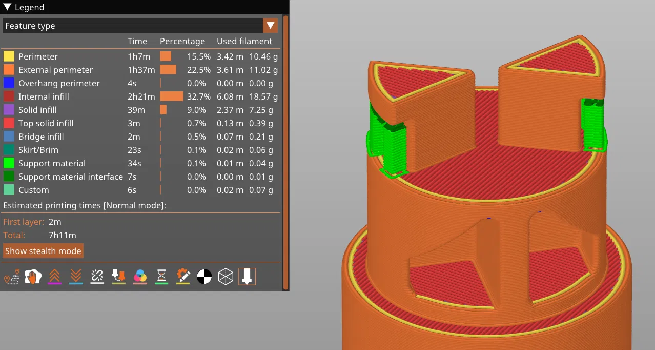 - Thời gian in: [MK3S+] 5h1m (holder 1kg) / 7h11m (holder 2kg)