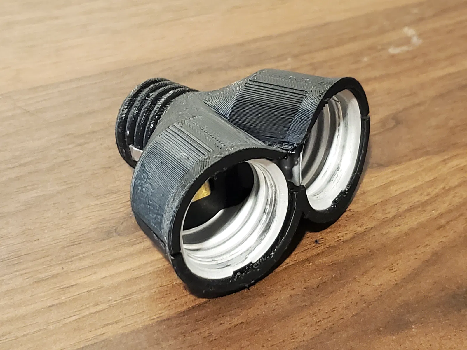 Dùng hardware từ bộ 2 Socket Adapter, mình thiết kế lại để lắp vừa 2 bóng A-Series tiêu chuẩn vào fixture can light E26, tạo hiệu ứng gradient với Philips Hue khi không có sản phẩm đúng góc nghiêng.