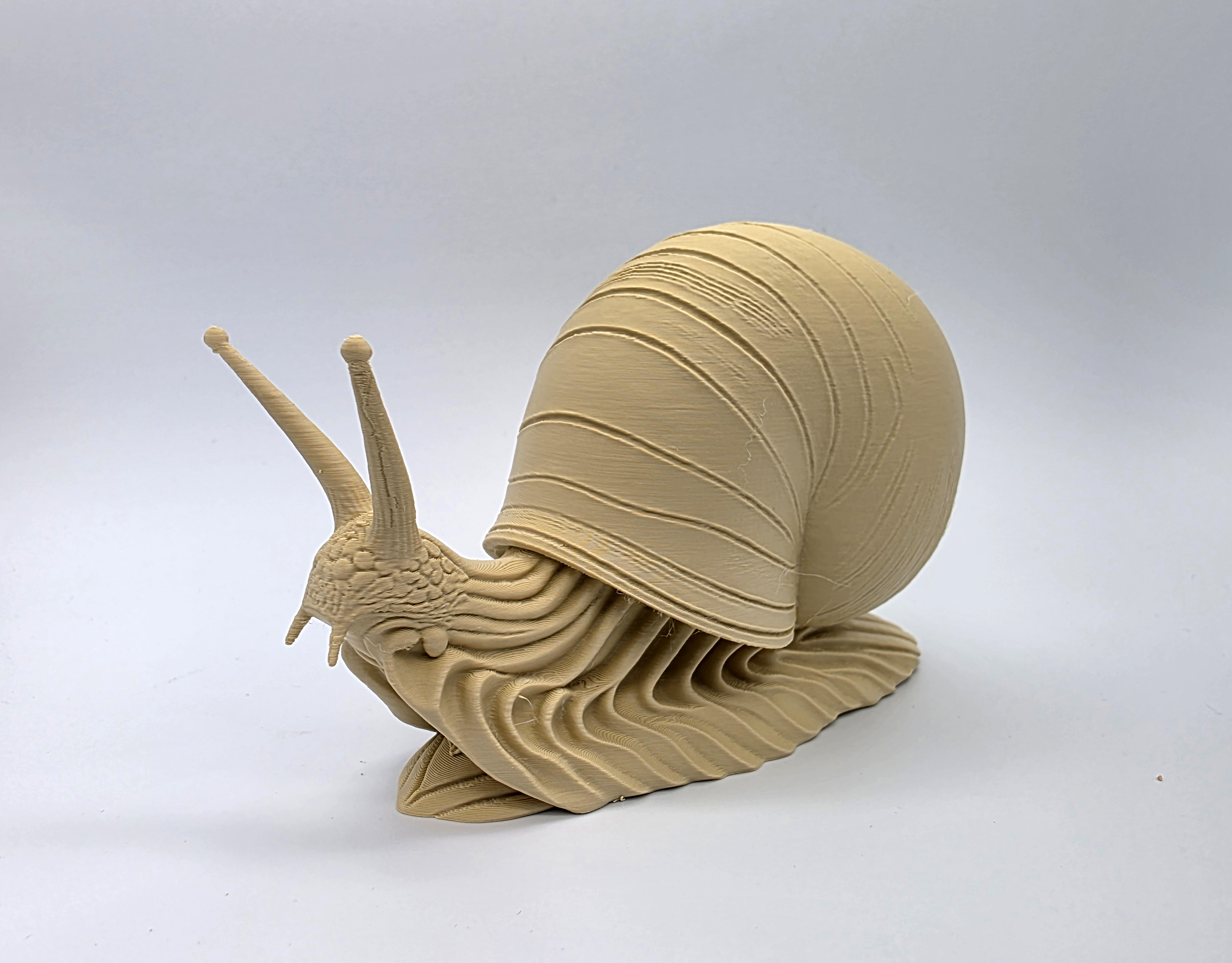 Mẫu ốc sên High-Detail Snail đáy phẳng, dễ in (EZ Printing). Thuộc bộ sưu tập 5 con ốc sên làm theo yêu cầu. Khuyến nghị dùng tree supports và chỉ đặt supports trên build plate.