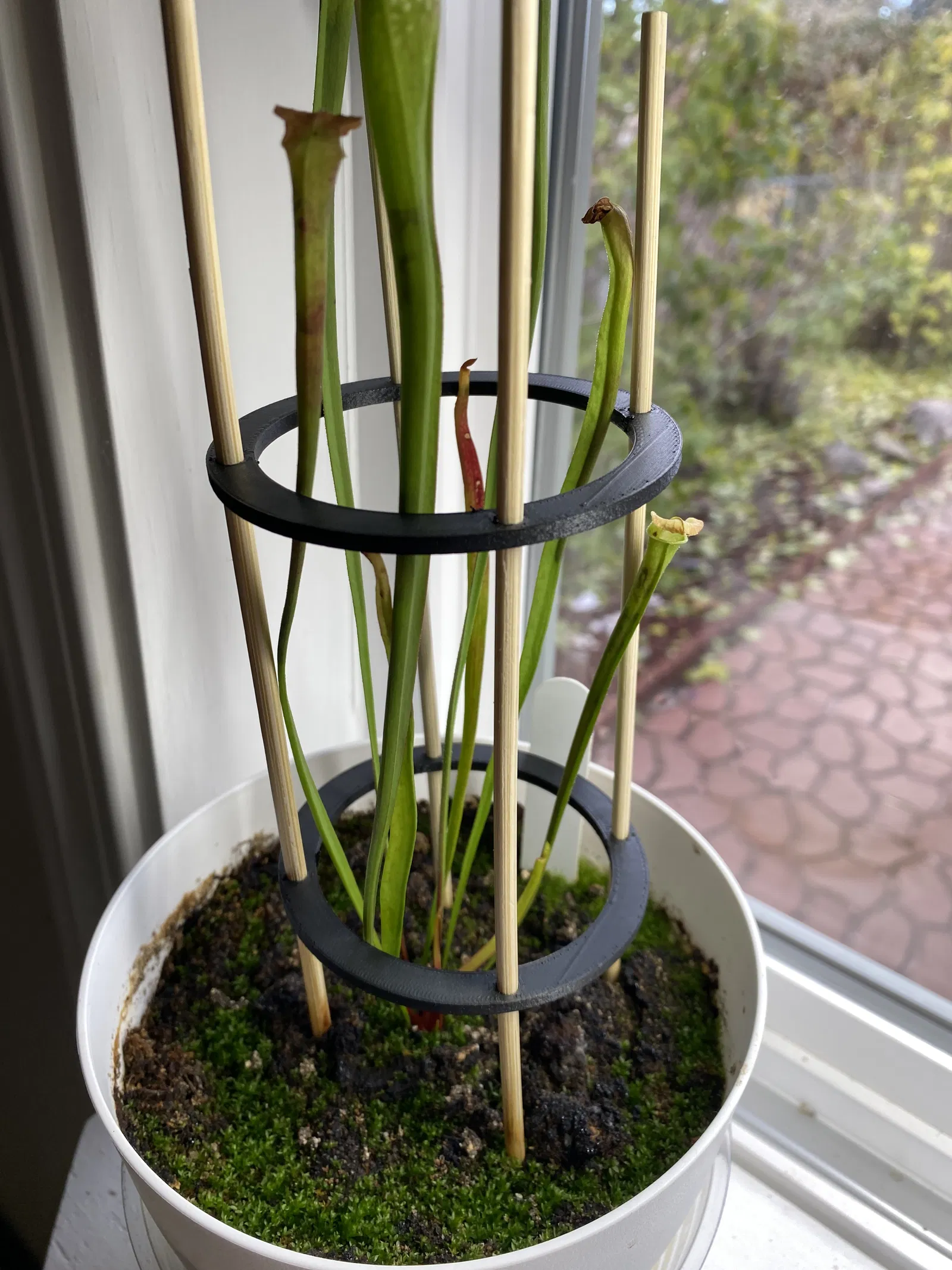 Sử dụng xiên gỗ, tạo ra một cấu trúc hỗ trợ được khép kín để hỗ trợ các loại cây cao.