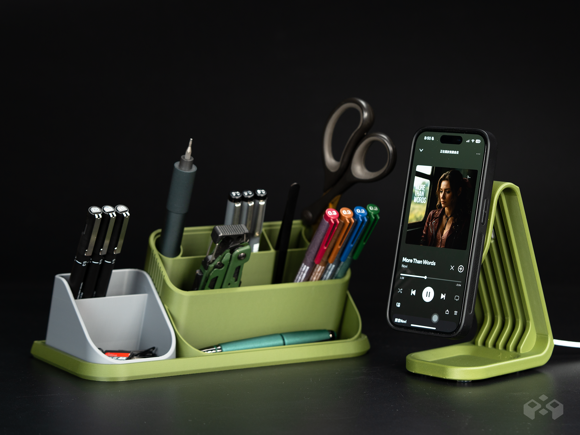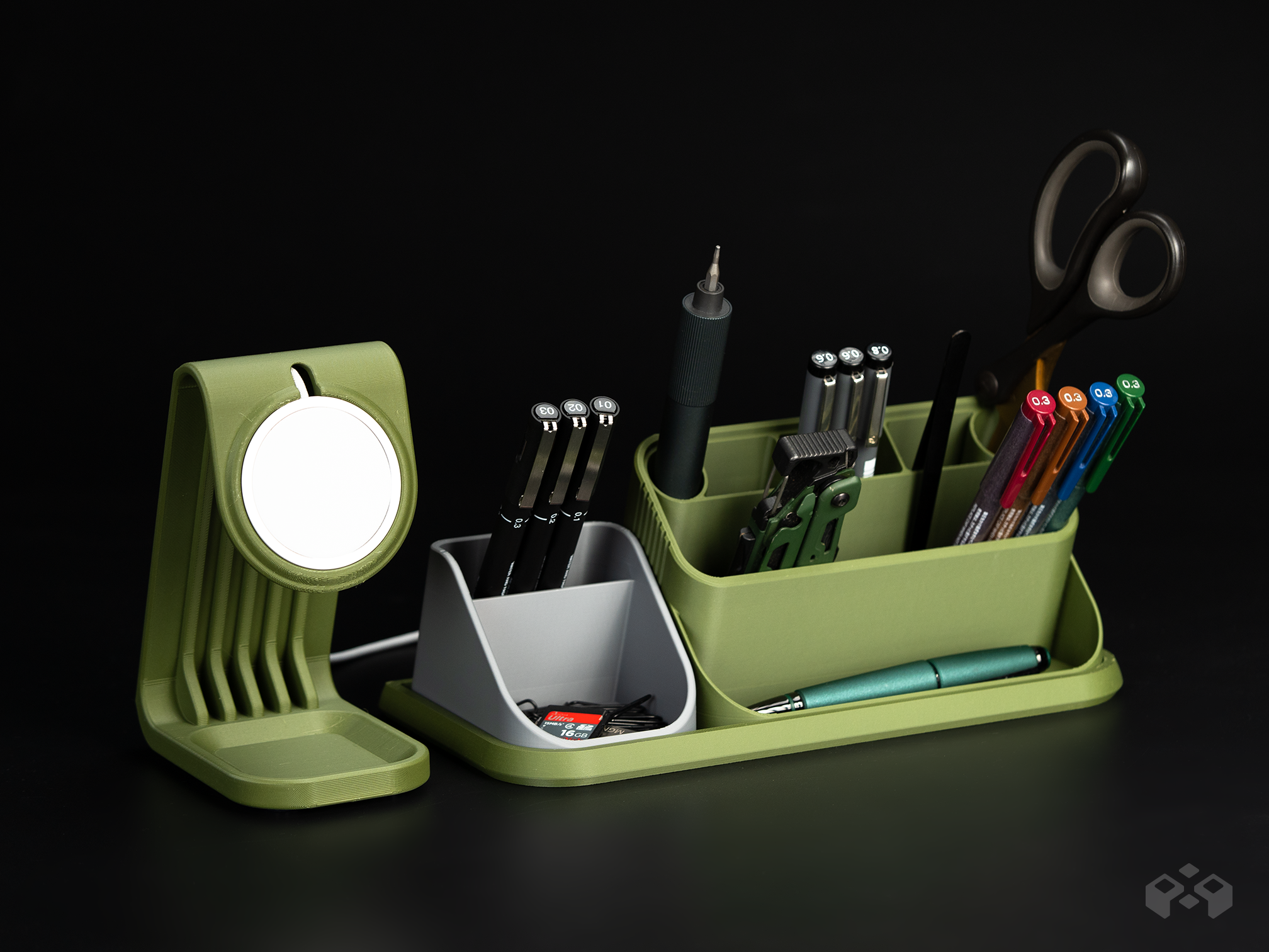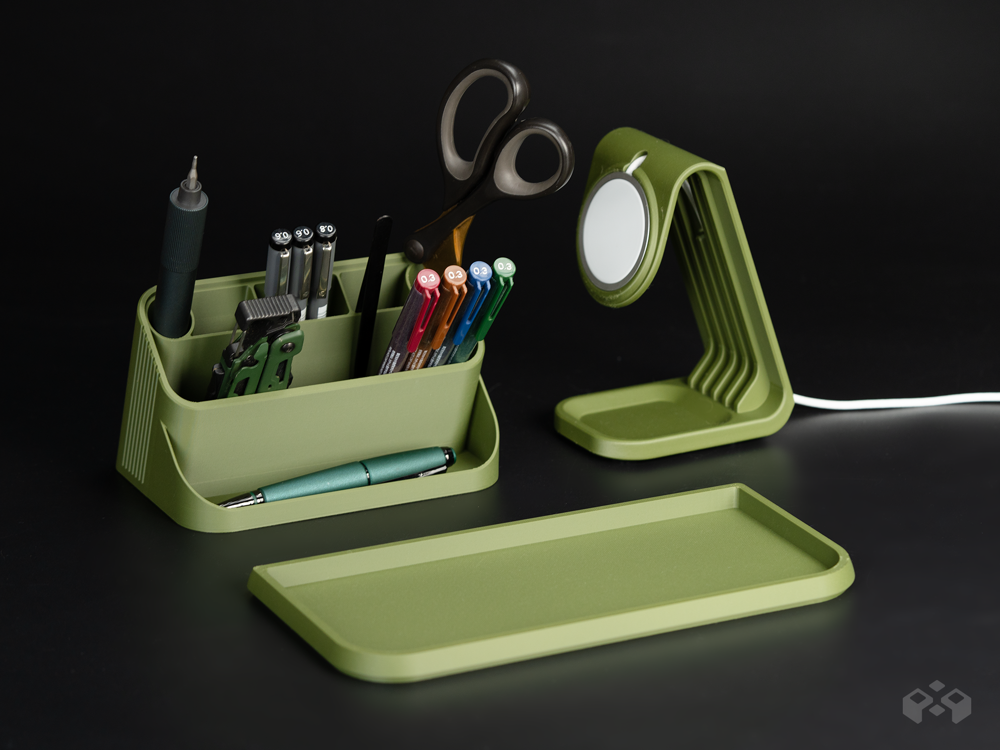 Bộ Desk Organizer này là phiên bản được nới rộng của Modular Desk Organizer System. Bộ gồm 4 module có thể hoán đổi: MagSafe Phone Stand Module, Pen Holder Module, Storage Cup Module, và Extended Base Tray, tất cả đều được thiết kế để khớp với nhau liền mạch.