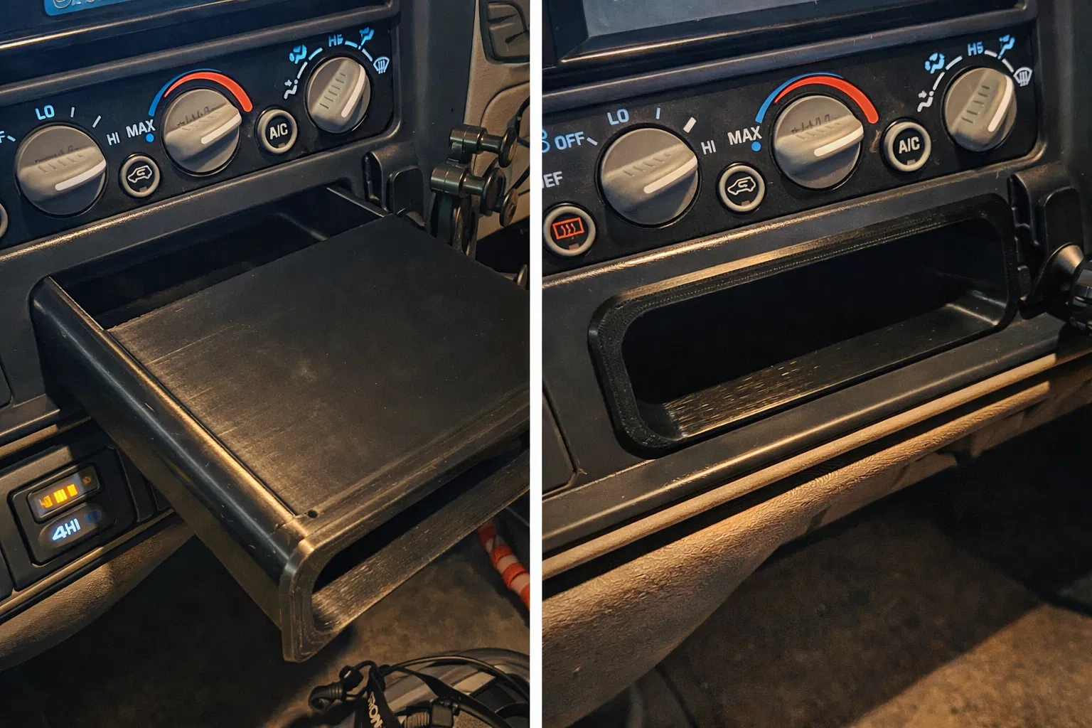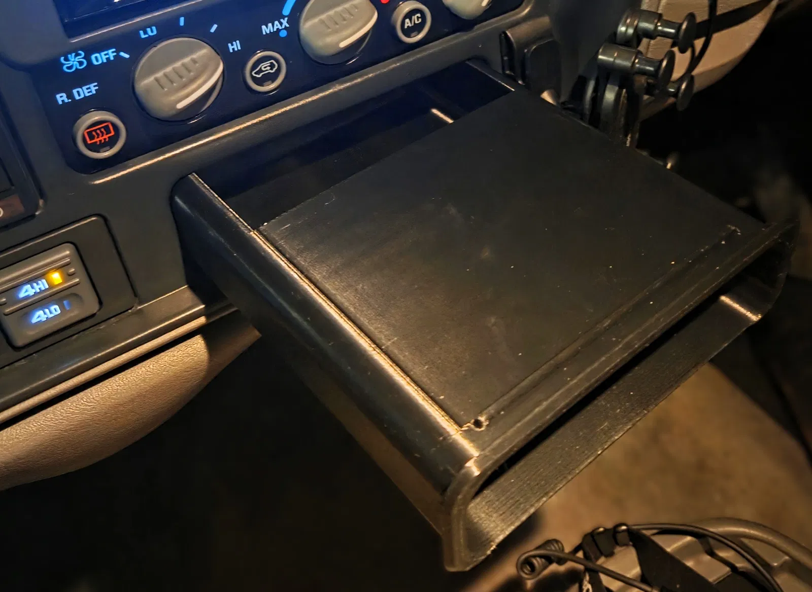 Mẫu 3D này được tạo để thay thế khoang lắp đầu CD nằm bên dưới cụm điều khiển điều hoà trên xe GMT400 đời cuối những năm 1990 và một số xe/tải/SUV Chevy & GMC GMT800 đời đầu (thế hệ 1). Mình đã tìm khá kỹ trong các kho model 3D sẵn có mà không thấy giải pháp làm sẵn — mấy mẫu gần giống nhất thì lại dành cho xe classic đời cũ, không phải nền tảng GMT.