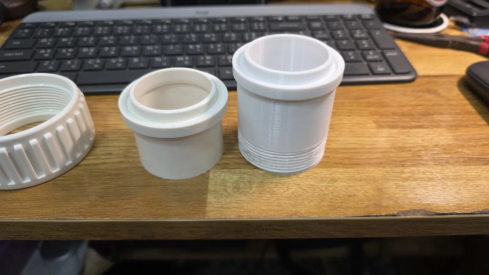 Adaptor giúp thay bơm INTEX sand filter bằng standard pool pump mà vẫn dùng được ống INTEX 1.5 inch. Thiết kế copy fitting gốc, thêm ren; in PETG (0.15mm, 100% infill), dùng lại o-ring/collar bơm mới và gasket INTEX.