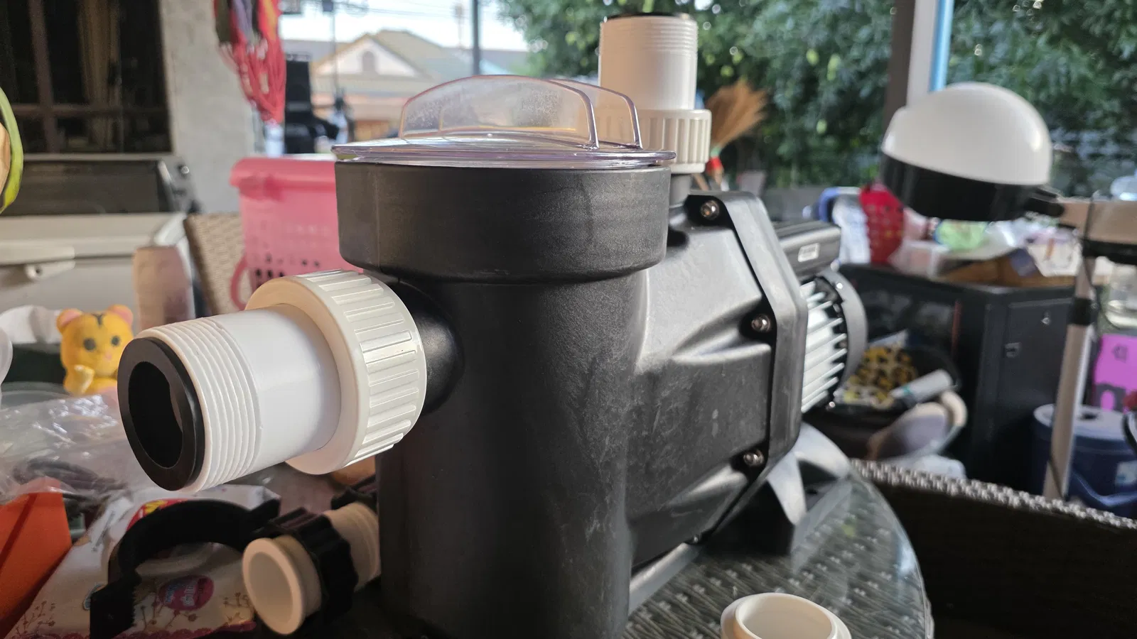 Mình quyết định thay bằng bơm hồ bơi loại tiêu chuẩn (standard pool pump), nhưng vẫn muốn giữ nguyên kiểu nối ống vì mình có đường ống đi ngầm dưới bãi cỏ ra chỗ đặt bơm, nên không muốn đục lên để thay đổi.