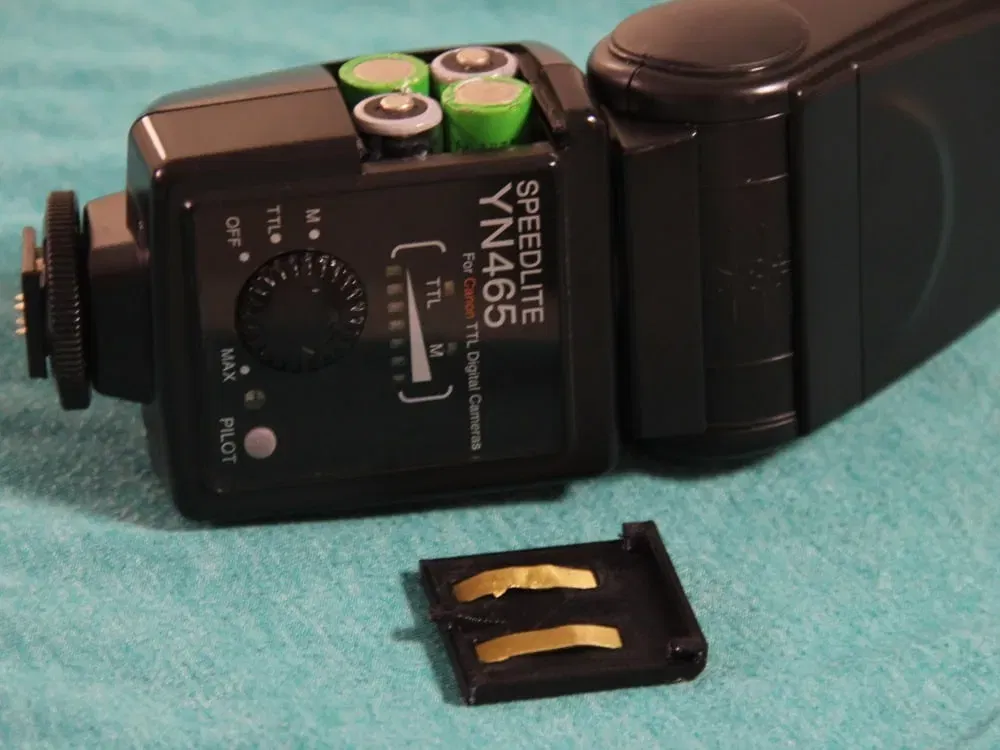 Đèn flash YN465 của tôi đã lặn khỏi đèn chiếu sáng vài năm trước và cửa pin đã bị vỡ, tôi đã có nó ở lại ở