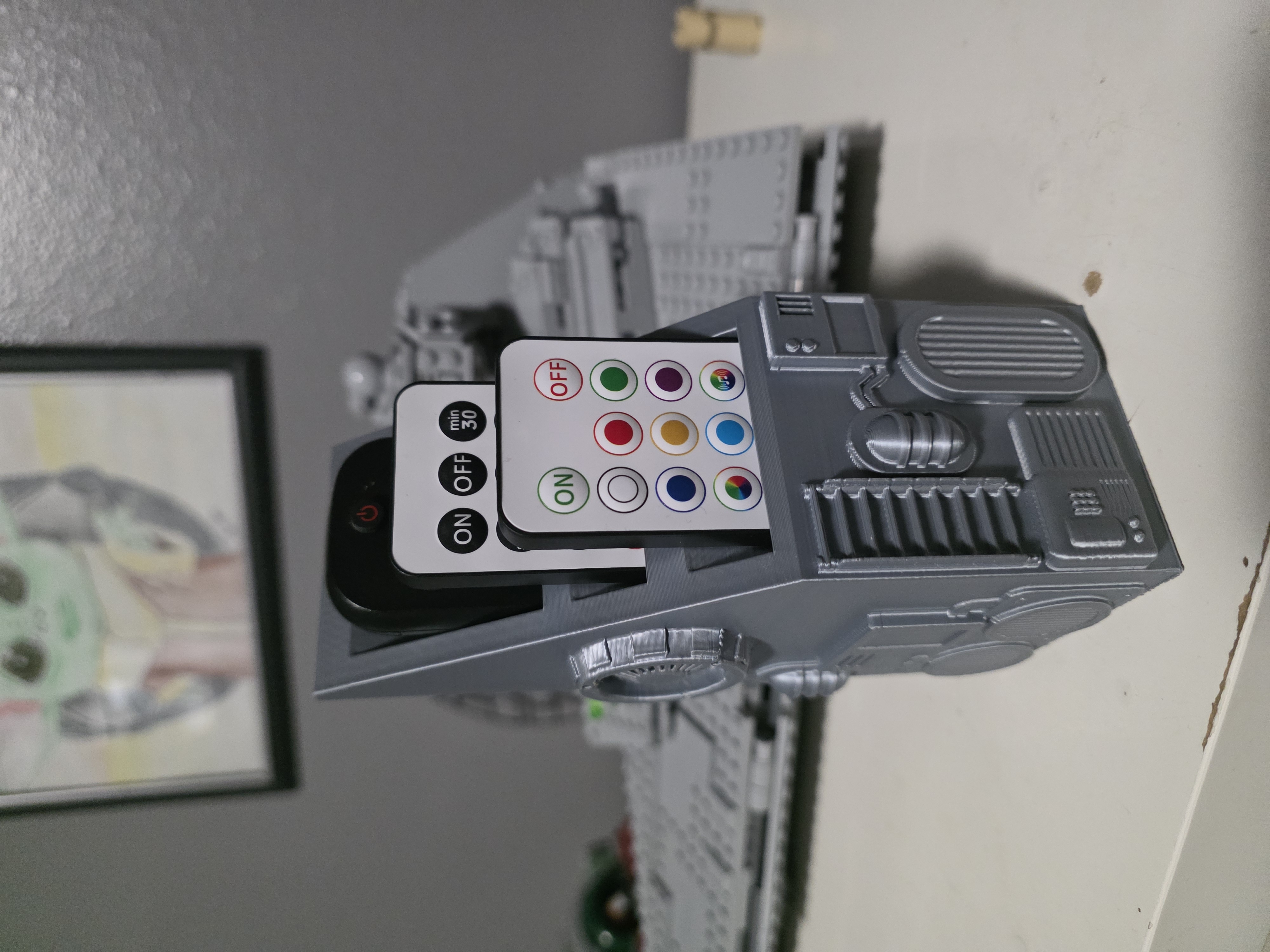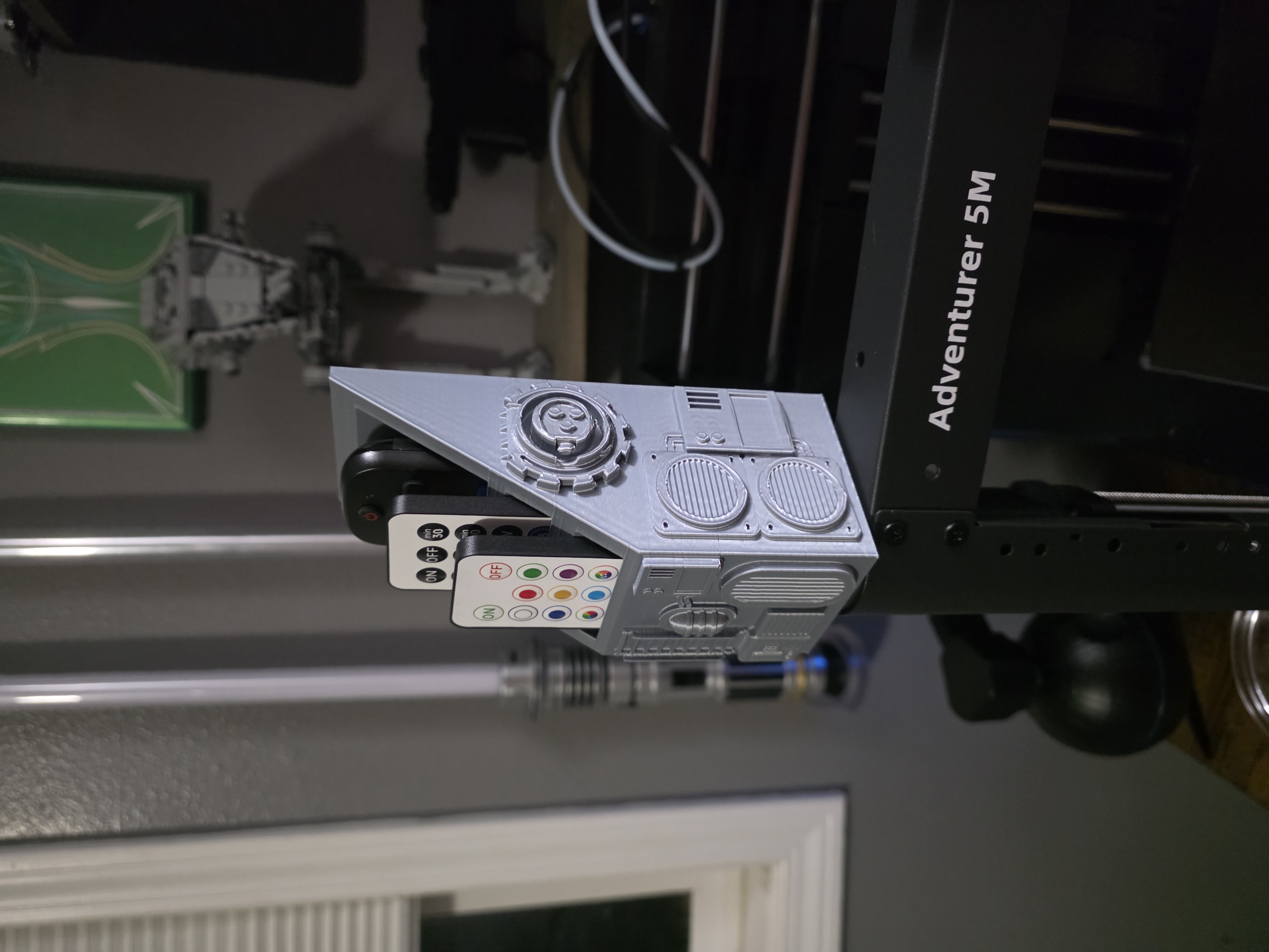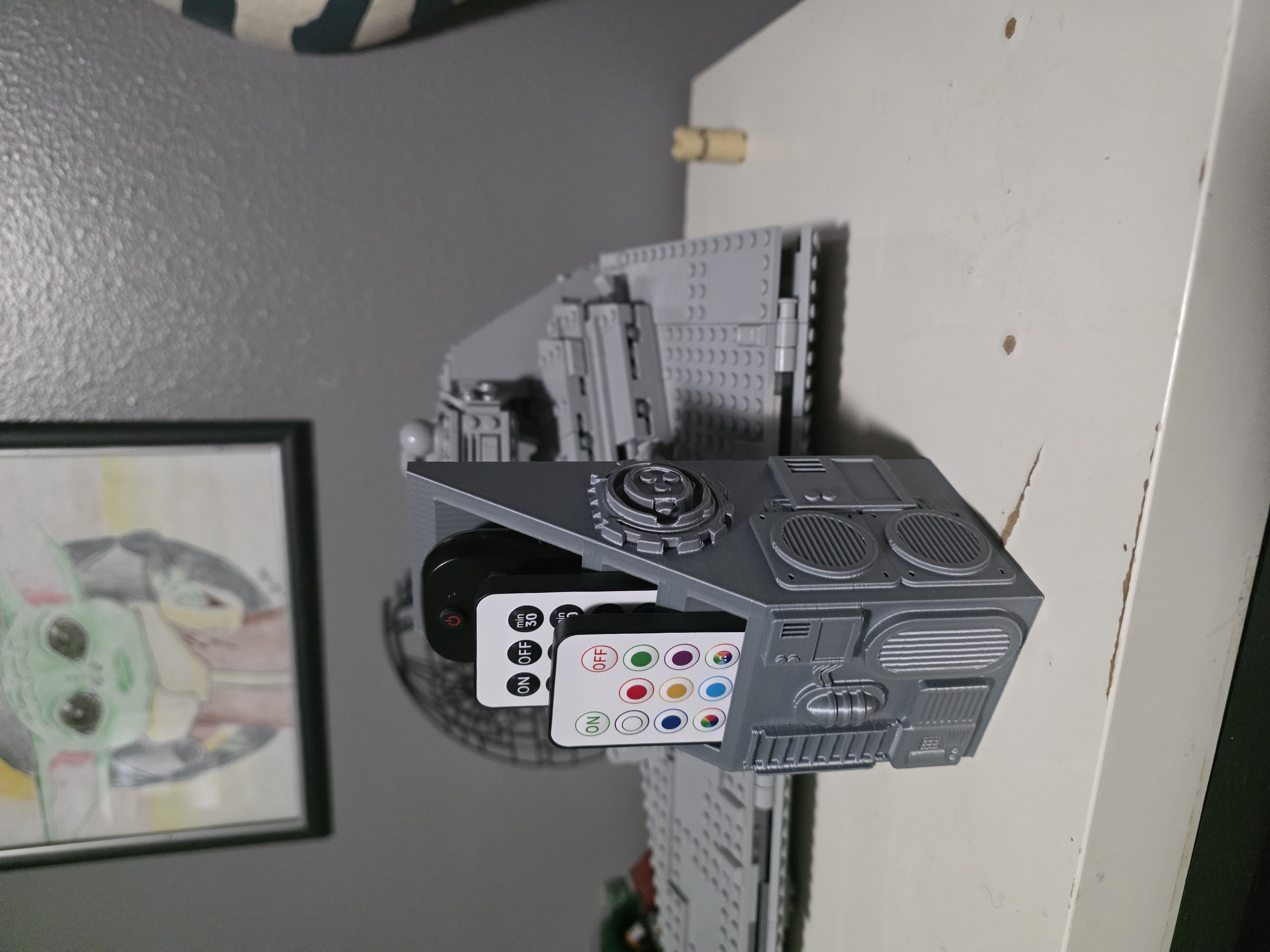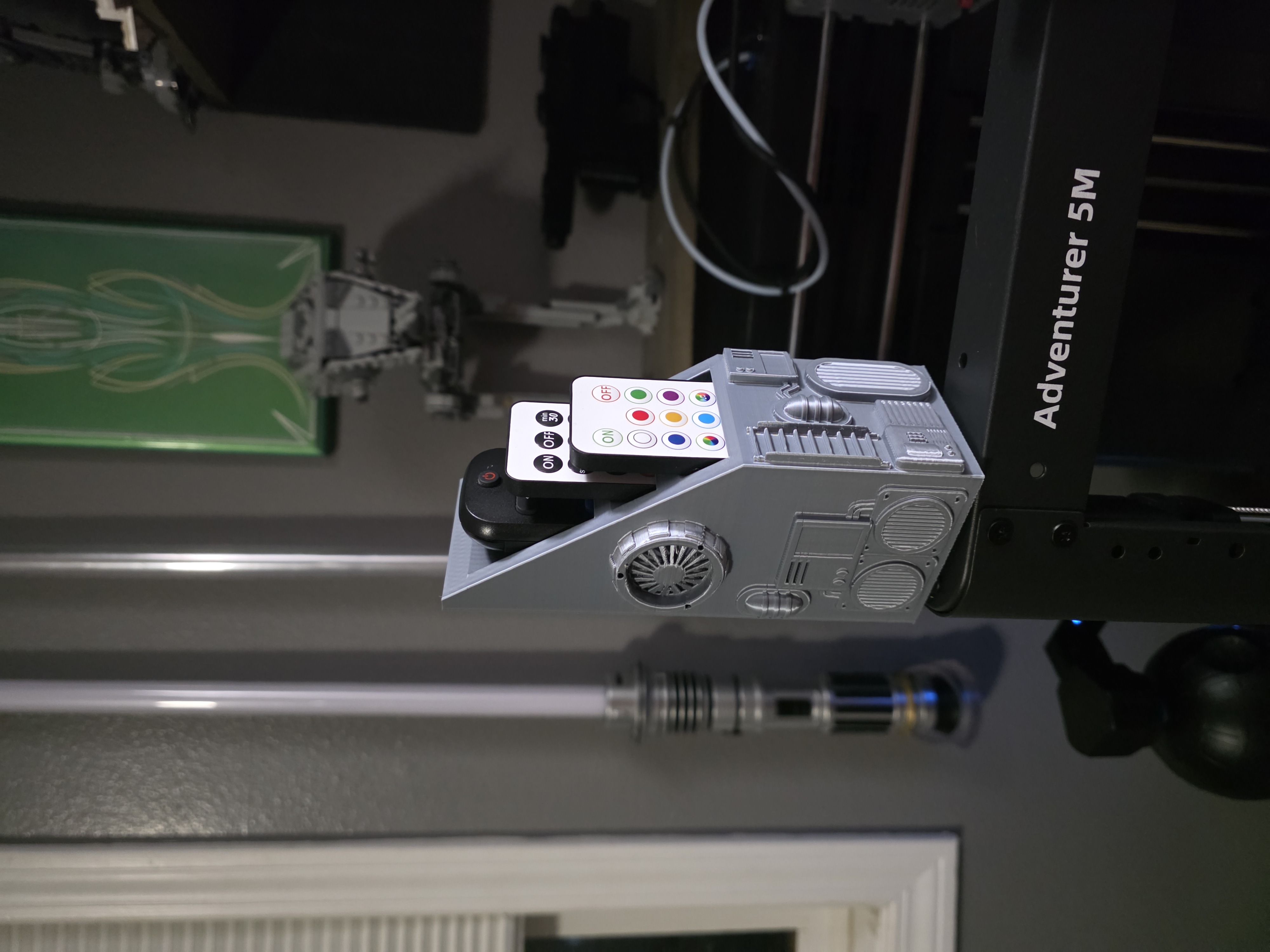 Mẫu giá đỡ remote Death Star này giữ chiếc remote chính của bạn trong khoang chỉ huy trung tâm, kèm hai khe nhỏ phía trước dành cho remote mỏng hoặc remote LED. Không còn thất lạc remote, khỏi phải đi tìm—chỉ còn đường nét gọn gàng, thiết kế biểu tượng và cách sắp xếp chuẩn Imperial.