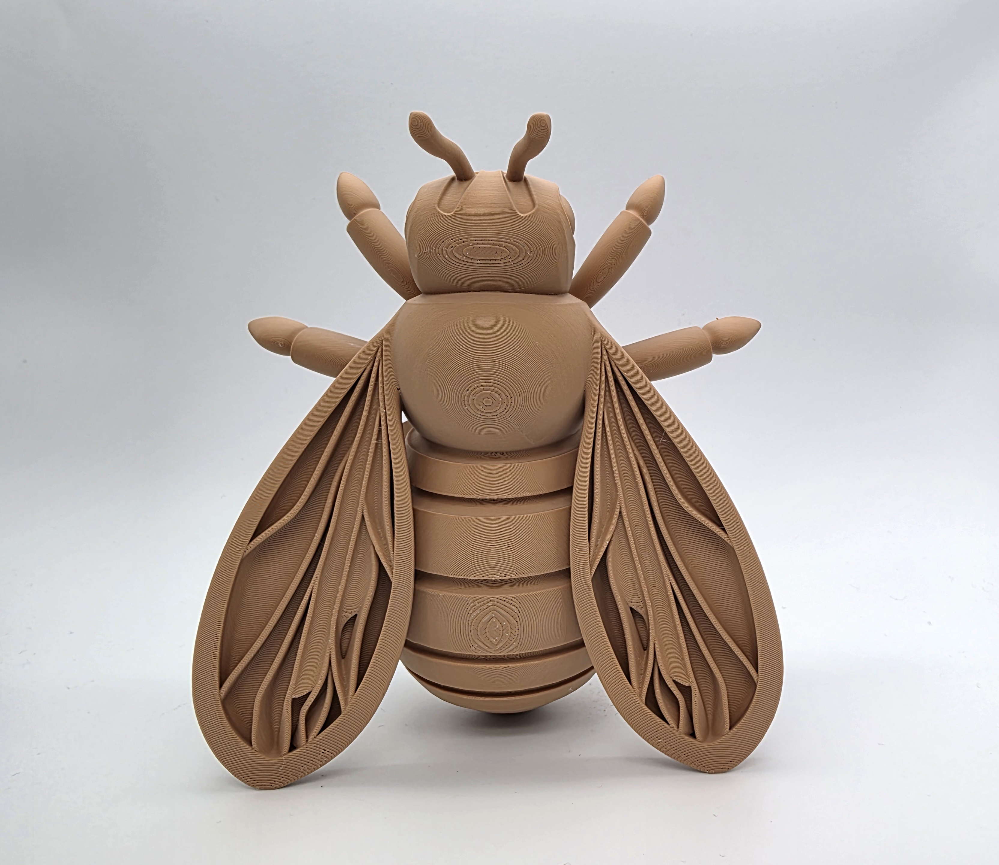 Mẫu 3D “Wooden Honey Bee” dành cho người nuôi ong: thiết kế chắc chắn, hợp trưng bày/đồ chơi. Lưu ý support ở phần bụng có thể khó tháo; khuyến nghị dùng Tree Supports trên build plate.