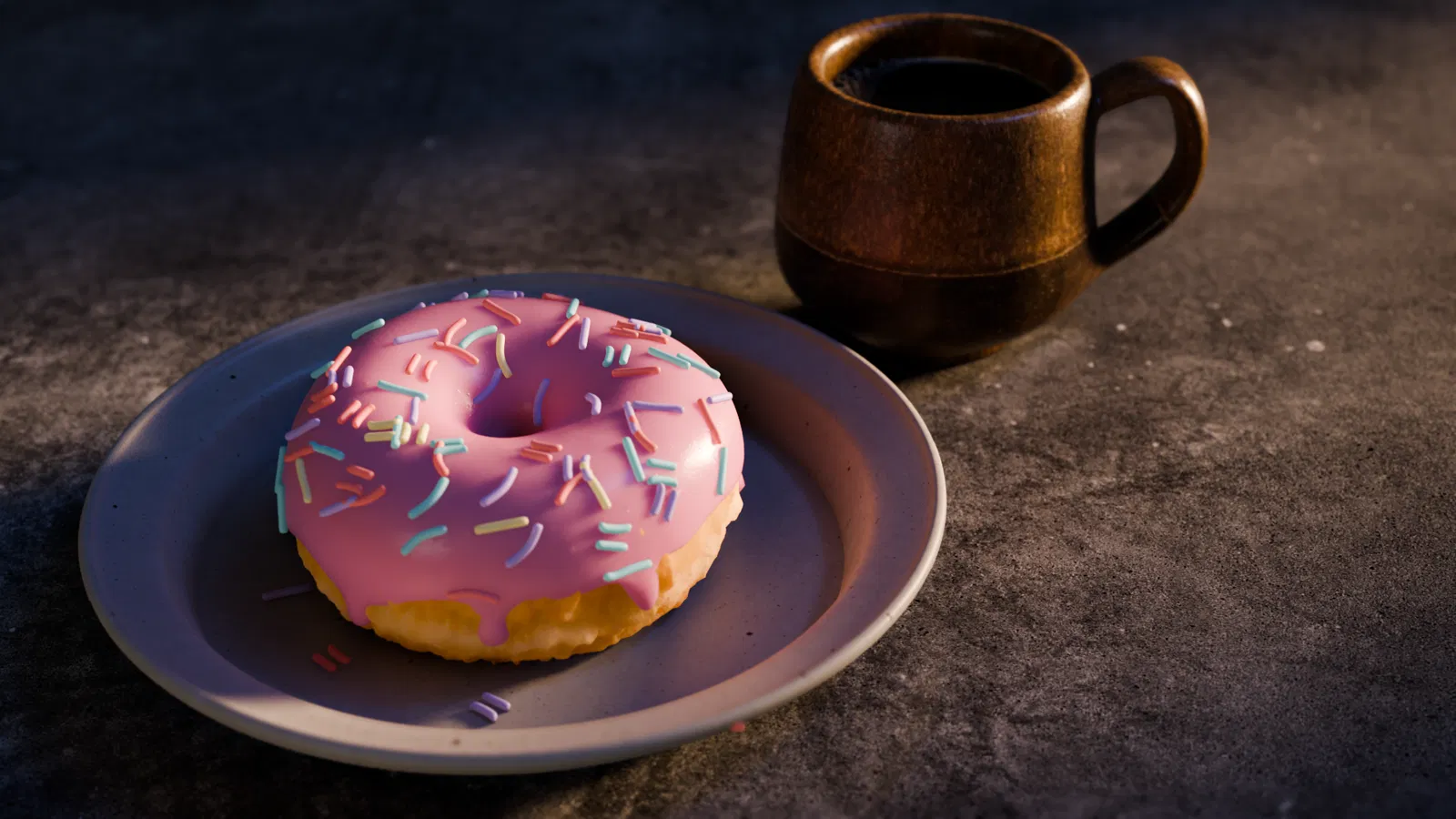 Mẫu gồm một bánh donut và một ly cà phê, được dựng bằng Blender như một trong những dự án dài đầu tay. Khi in, nên để infill khoảng 10% và bật supports cho các phần overhang cần thiết.