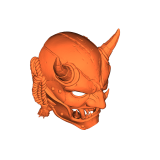Mẫu Oni Half-Mask này mang vibe chiến binh nghi lễ cực hầm hố: hốc mắt sâu, mảng gò má sắc cạnh và cặp nanh to nặng. Thiết kế dạng mặt nạ trưng bày độc lập (không kèm khung), in xong là sẵn sàng treo hoặc gắn lên tường.