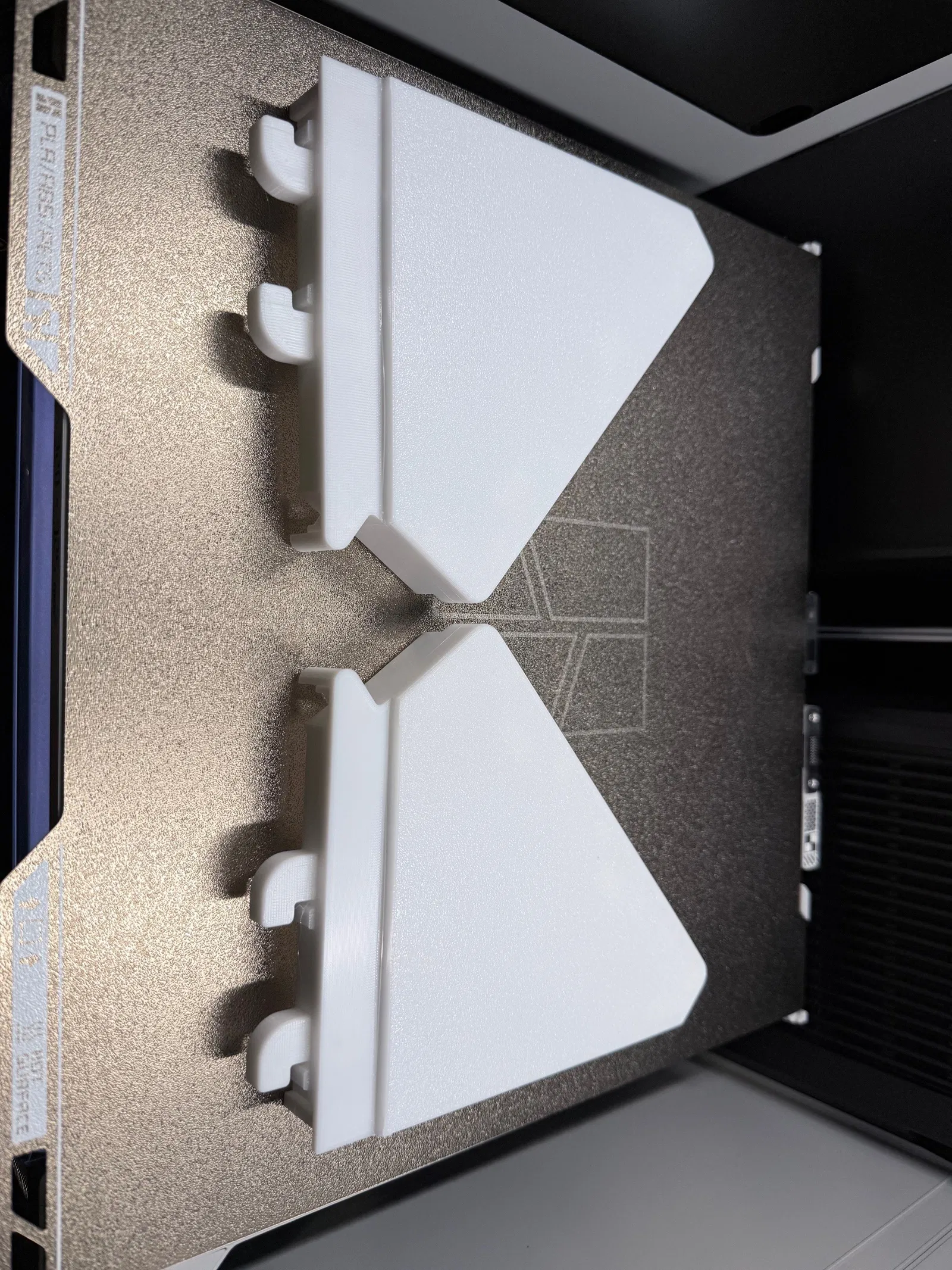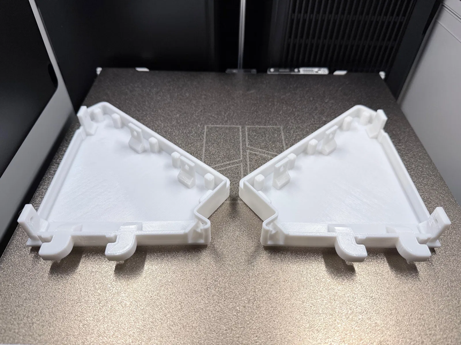 Mình in bằng PETG và dùng vật liệu support chuyên dụng (support for PLA/PETG) cho phần overhang chính. Rất nên làm vậy vì chỗ đó lộ ra ở phía ngoài. In trên textured PEI plate thì phần mép ngoài sẽ có texture nhìn đẹp.