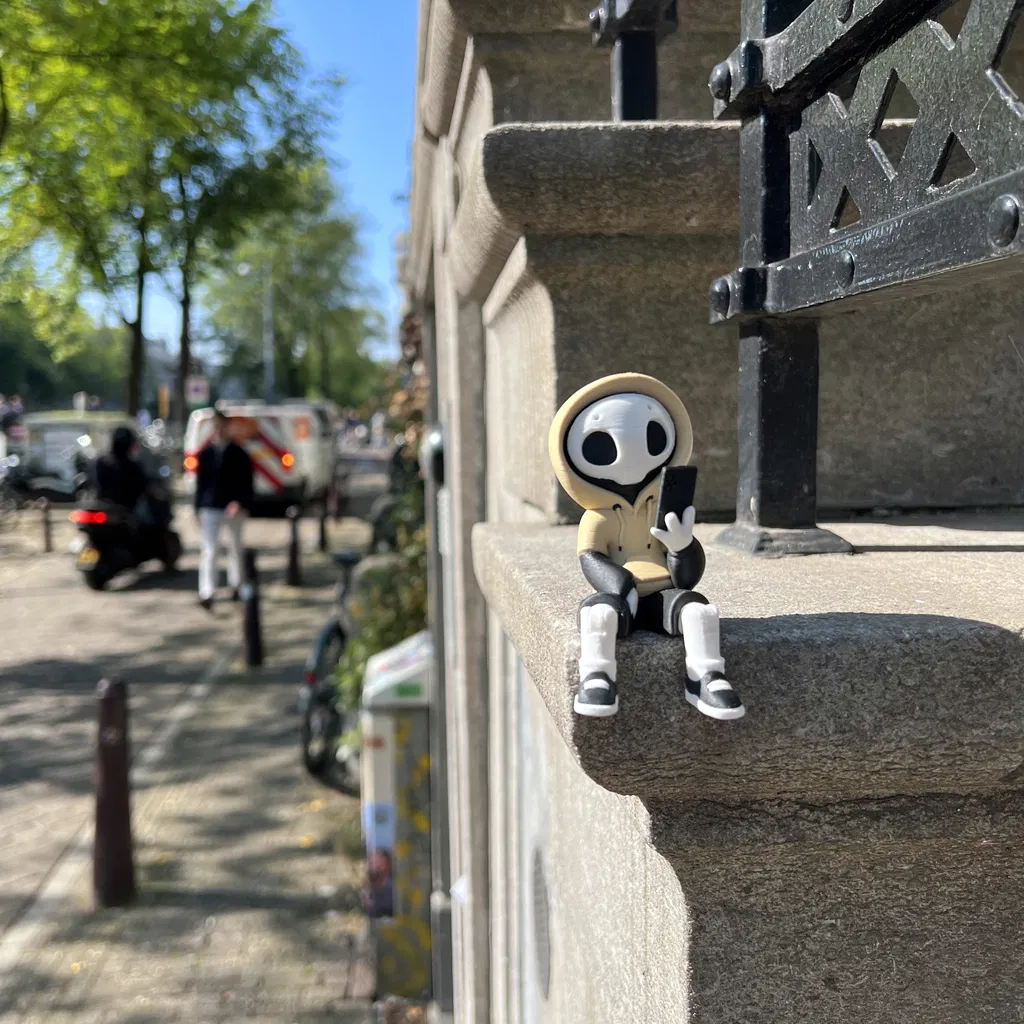Hazy là một art toy dạng articulated print-in-place, thiết kế để có thể ngồi ở bất kỳ đâu… nhưng đi đâu thì ổng cũng chăm chăm nhìn điện thoại.