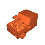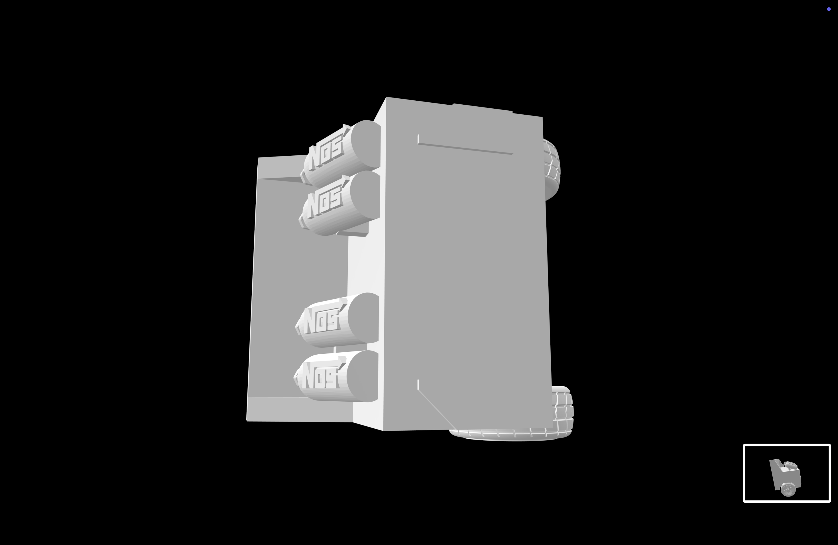 Mẫu Geo Tracker độ kiểu mini truck: máy Chevy stroker V8 383 ci, kèm blower và supercharger cực lớn. Thiết kế có hiệu ứng bánh xe quay, hợp cho trưng bày và in 3D.
