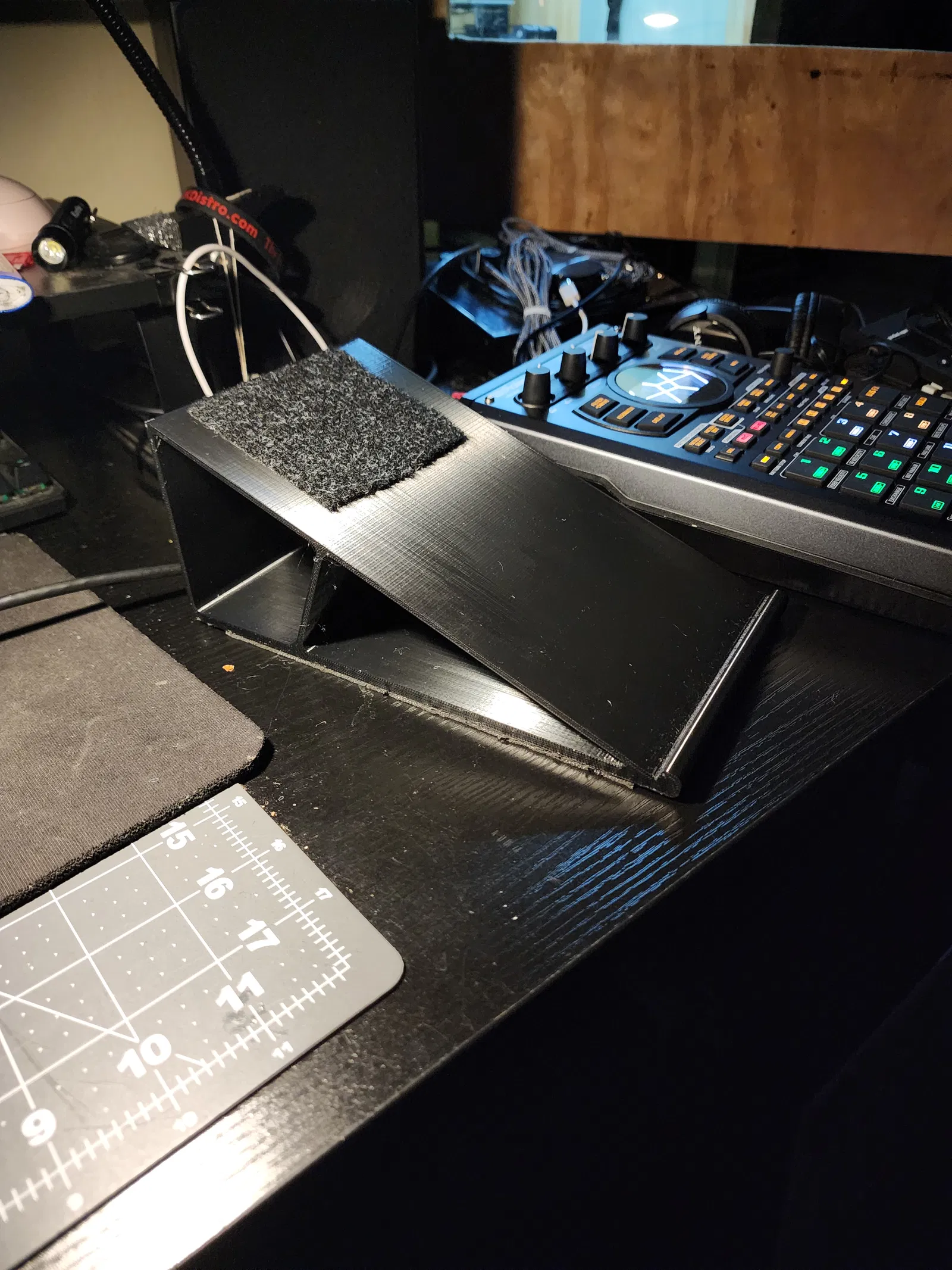 Đây là một cái stand cho Roland SP-404 mk2. Mình dán thêm một lớp thảm mỏng ở mặt trên để hạn chế trầy xước, và lót một ít foam mỏng ở dưới đáy để nó không bị trượt qua lại.