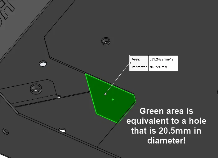 Cái lỗ hở này là một nguồn rò rỉ khí nóng nữa — nó to tương đương một lỗ đường kính 20.5mm! Việc bịt nó (và những chỗ khác) là một phần trong dự án lớn hơn của mình: bịt kín TẤT CẢ các điểm rò rỉ khí để enclosure nóng lên nhanh hơn và đạt nhiệt độ cao hơn ngay cả khi không dùng hệ thống sưởi enclosure chủ động.