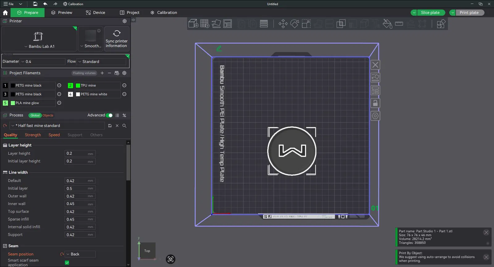 Ngoài ra mình tách phần cap và phần logo thành 2 file riêng để dễ in khác màu, nên khi import vào slicer nhớ chọn "two files as single part".