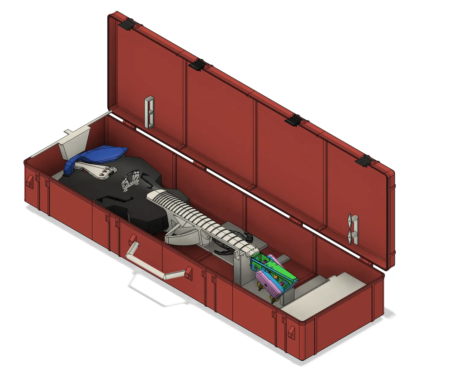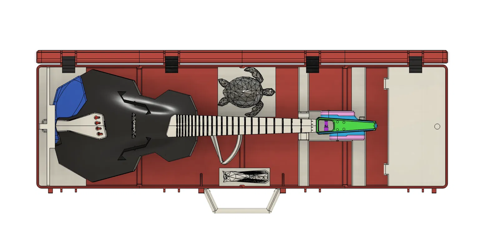 Hộp đựng full size remix từ Parametric Rugged box để vừa Modular Fiddle 4 String V4 và vĩ (bow) tiêu chuẩn. Có khay phụ kiện tùy chọn, gợi ý in PETG/TPU, dán bằng Weldon3 và cố định bằng silicon, nam châm 6x6mm.