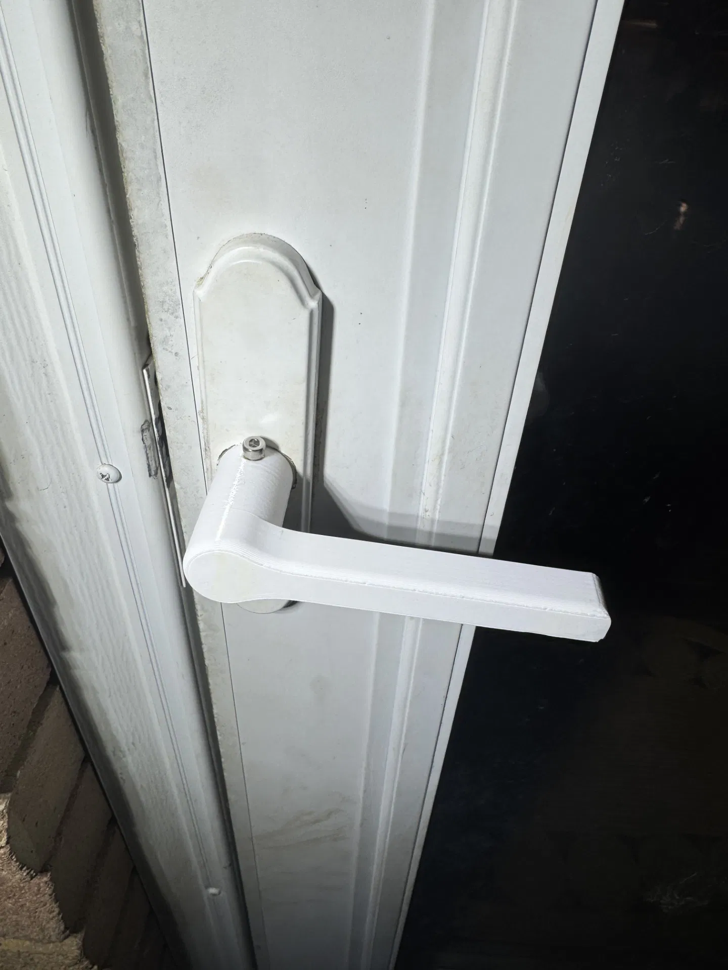 Tay nắm thay thế đơn giản cho storm door khi bị gãy/rớt. Cần 2 threaded insert M4x6 và 2 bu lông M4x8; trục vuông khoảng 11mm. In PETG cho độ bền tốt, giúp tiết kiệm chi phí sửa.