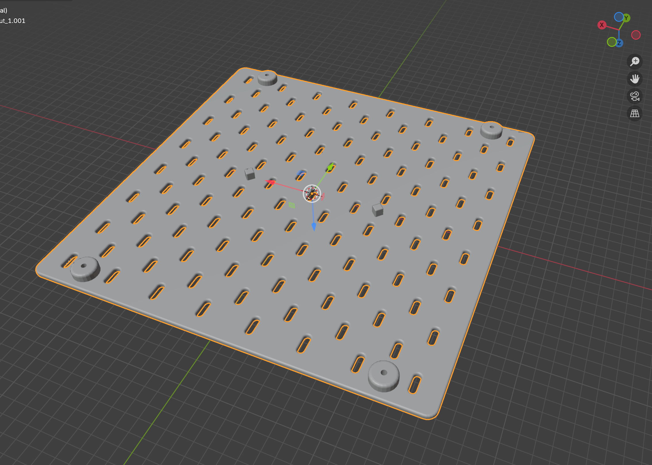 Bảng có 15 hàng và 15 cột để tận dụng các build plate lớn hơn, mình cũng thêm risers và lỗ bắt vít (screw holes) vì mình “khôn như hạt đậu” vậy đó.