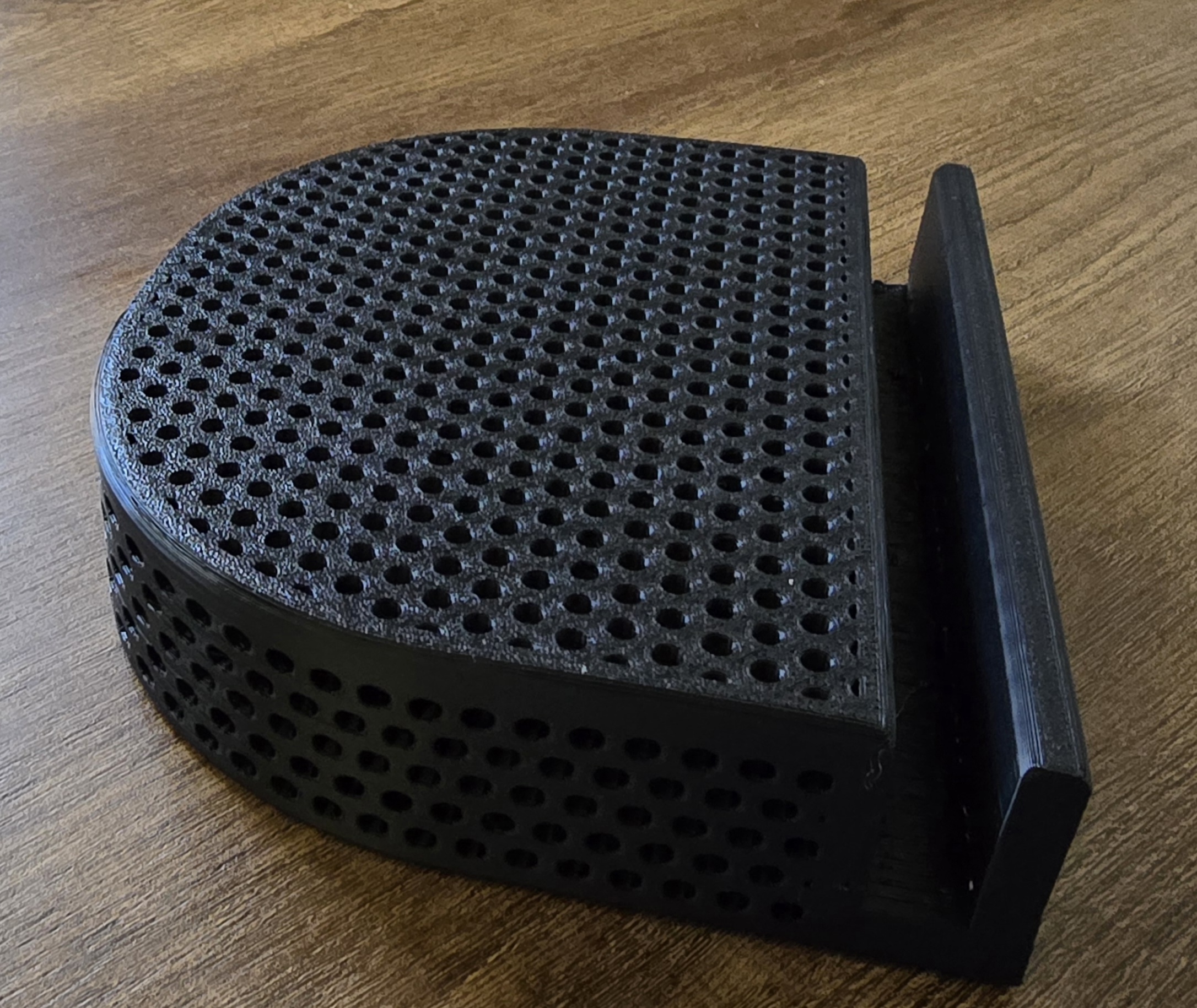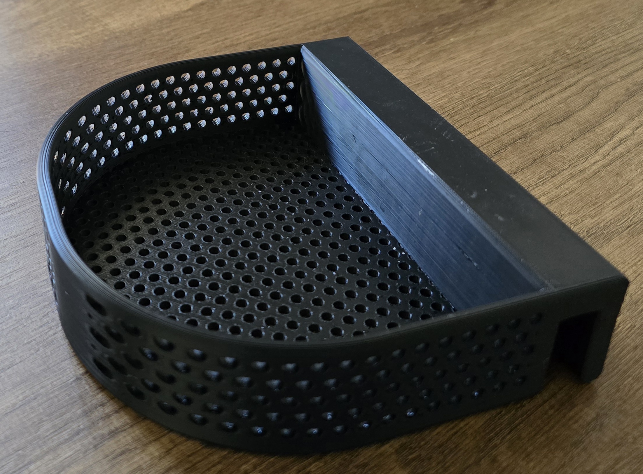 Thiết kế khá chắc chắn. Mình dùng infill 25% và chỉ 2 wall thickness. Vậy là dư sức rồi, và nếu tăng wall thickness lên hơn 2 thì sẽ bị báo lỗi G-code. Mình cũng dùng manual support. Nếu để auto thì nó sẽ đặt support dưới từng cái lỗ ở thành bên, mà phần đó không cần thiết. Lỗ đủ nhỏ nên có thể in không cần supports.