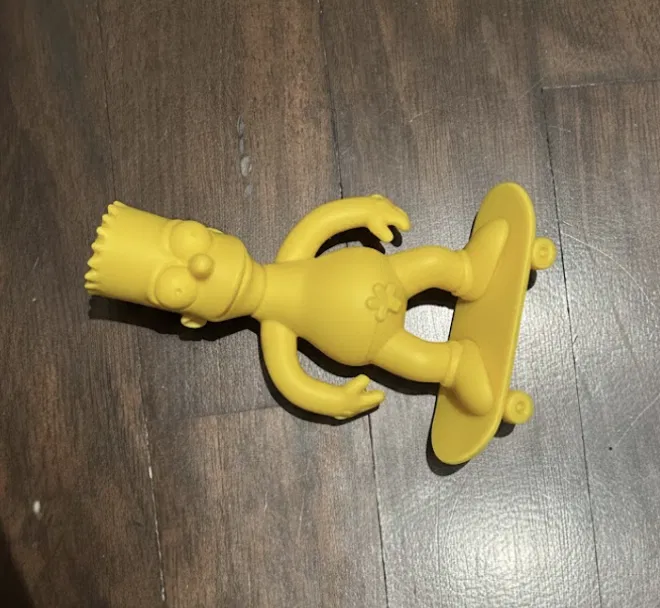 Mẫu 3D Bart Simpson trong The Simpsons với tạo dáng đang quậy phá trên ván trượt (skateboard). Phù hợp để in 3D làm mô hình trang trí cho fan cartoon, phong cách vui nhộn và nổi bật.