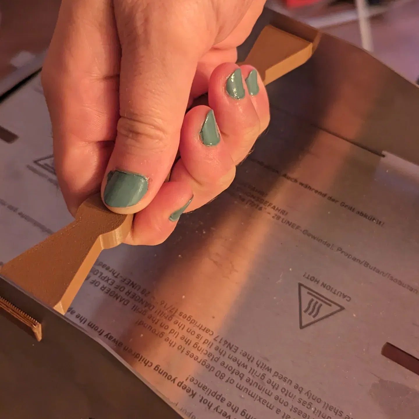 Khi chúng ta đang nói về một vỉ nướng, tôi đề nghị in nó trong abs/asa. Nhưng: Bài kiểm tra của tôi với PLA đã thành công. Vì vậy, tùy thuộc vào bạn và bạn có thể sử dụng các sợi khác. Nó sẽ chụp đúng vị trí.
