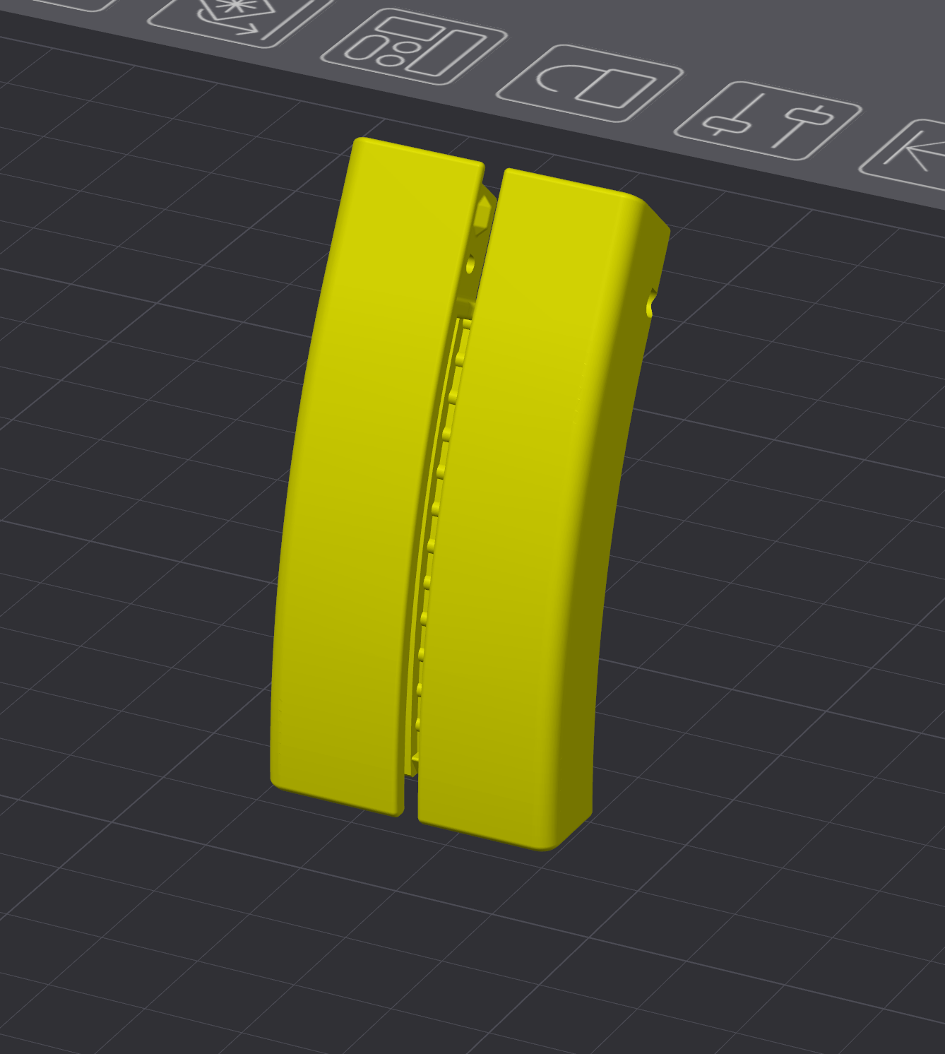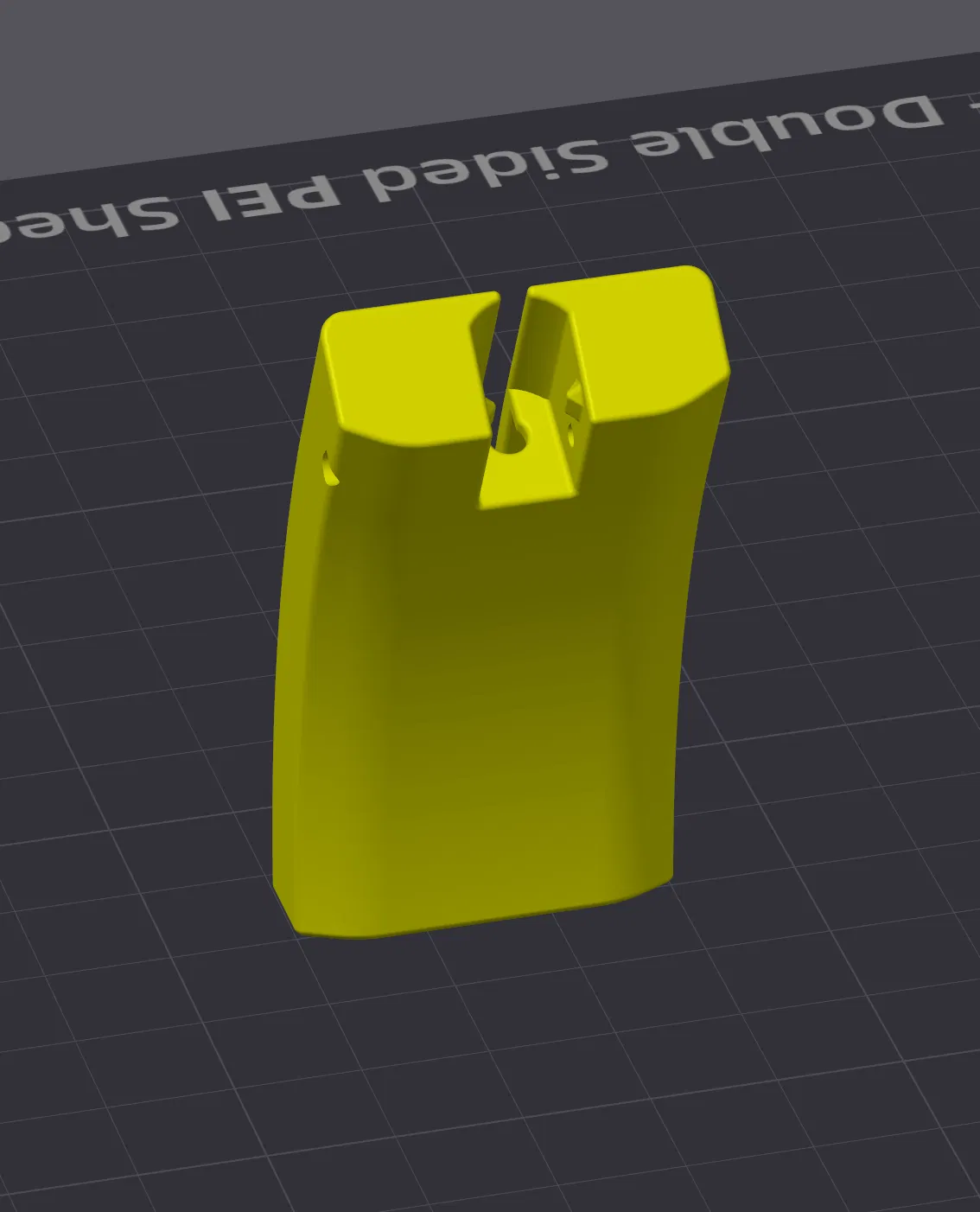 Mình in đặc (solid) với 5 perimeters và chọn vật liệu PBT vì nó rất dai, bám lớp tốt và có độ dẻo nhẹ. PETG hoặc ABS cũng dùng được nếu bạn in được layer bonding tốt. Nylon hoặc TPU loại độ cứng cao chắc là hợp nhất theo mình.