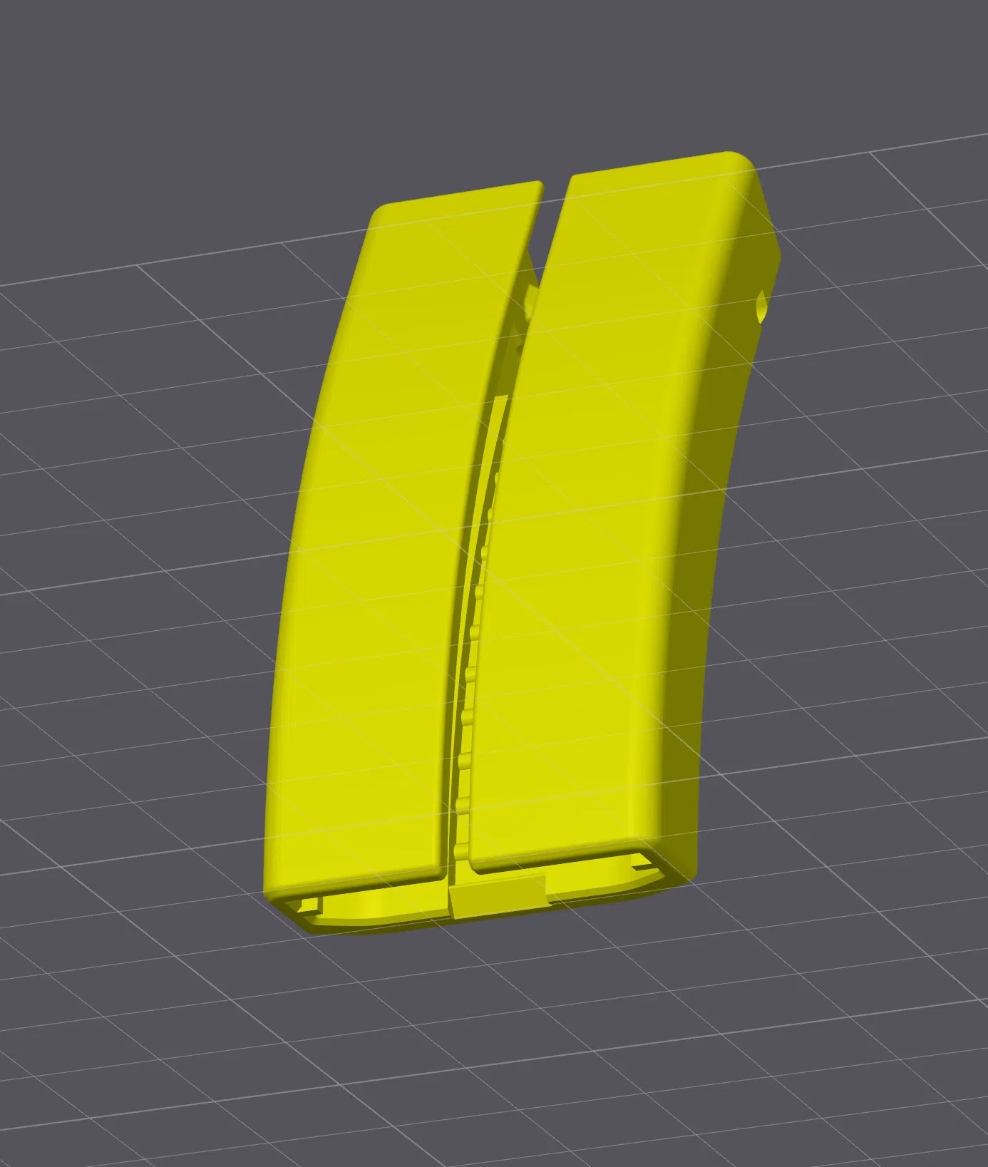 Model được thiết kế để in theo kiểu lật ngược: dựng đứng ở đầu hở (open end), phần hinge nằm lơ lửng trên không—y như mấy “renders” lười đó.