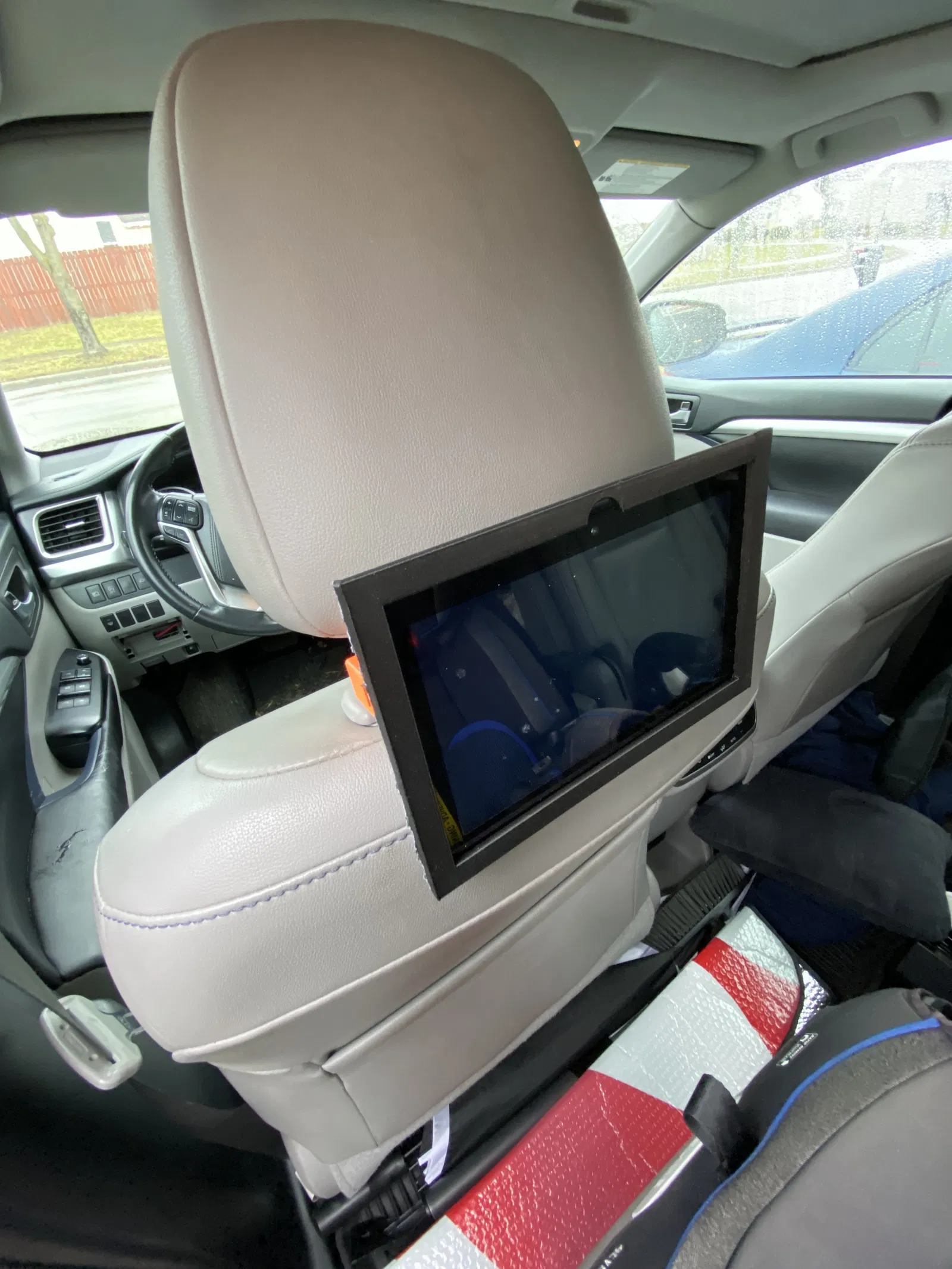 Hệ thống gắn lên tựa đầu (headrest) được thiết kế để phù hợp với mọi thanh ty headrest. Có kèm ốp (case) cho máy tính bảng trần hoặc dùng chung với ốp Kids.