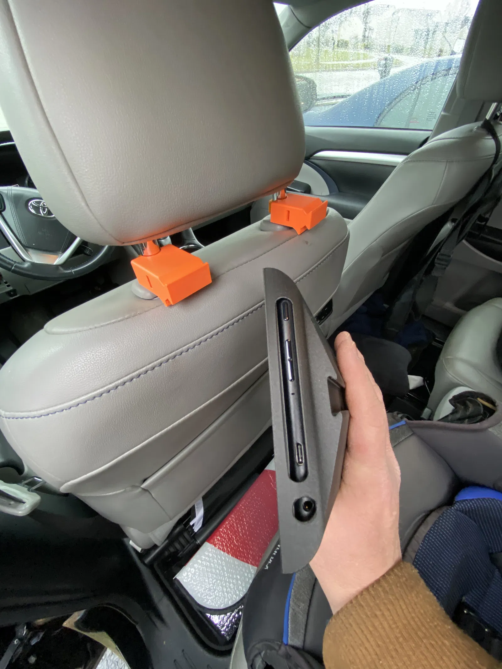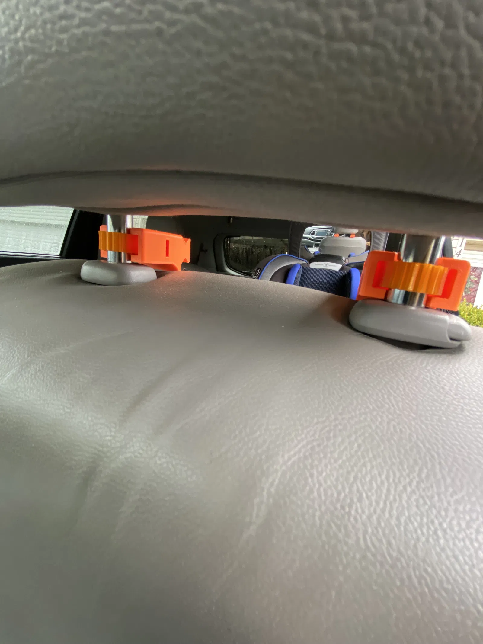 Bộ này gồm 2 connector gắn vào thanh ty headrest, 2 latch để khóa cố định connector, và 1 case để gắn lên các connector đó. Mình khuyên dùng PETG cho case và bracket để hạn chế cong vênh khi để trong xe nóng, và dùng TPU cho latch vì độ bền theo lớp và độ dẻo tốt. Tuy nhiên mình cũng hơi lo TPU có thể lỏng nhẹ trong xe nóng do vật liệu mềm ra, nhưng thiết kế chắc vẫn đủ “dư” để giữ (khu mình thì lạnh tới tầm tháng 4, mình sẽ cập nhật nếu có vấn đề).