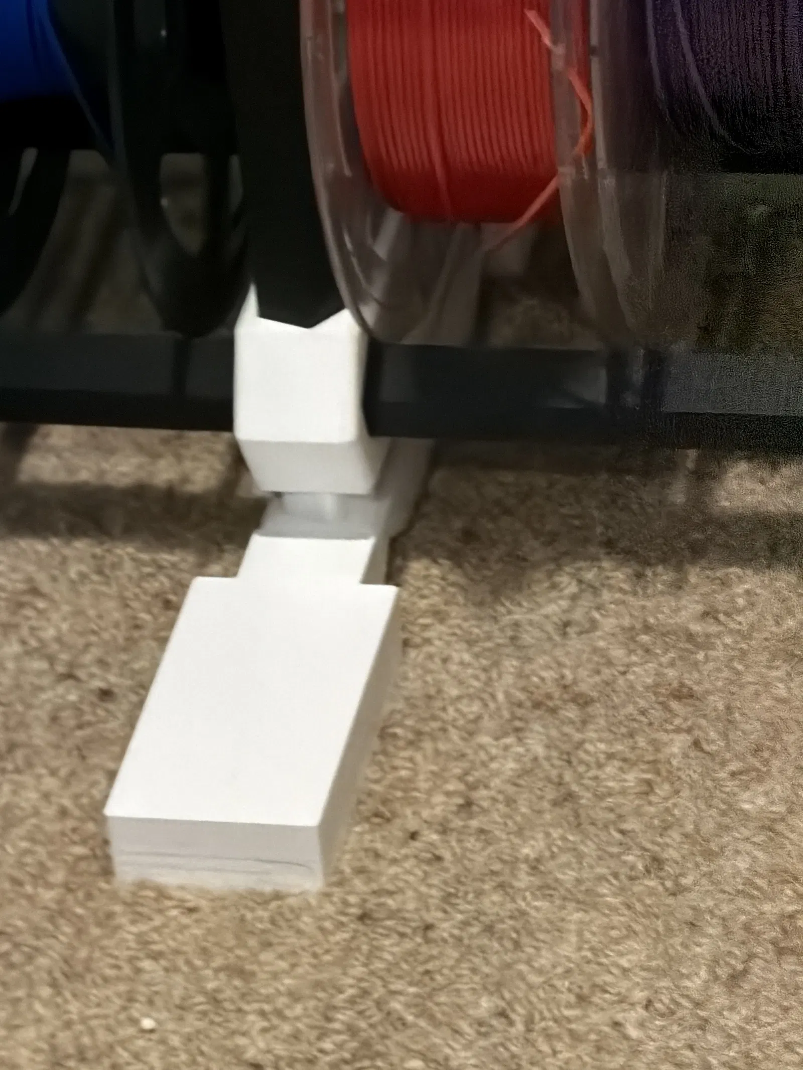 Mẫu chân đế đơn giản giúp ổn định modular rack khi đặt trên sàn trải thảm hoặc khi dựng rack cao. Fit khít, cần gõ nhẹ để lắp, có khoảng hở ~5mm tăng chống lật và nâng filament khỏi sàn để hạn chế rủi ro khi bị đổ.