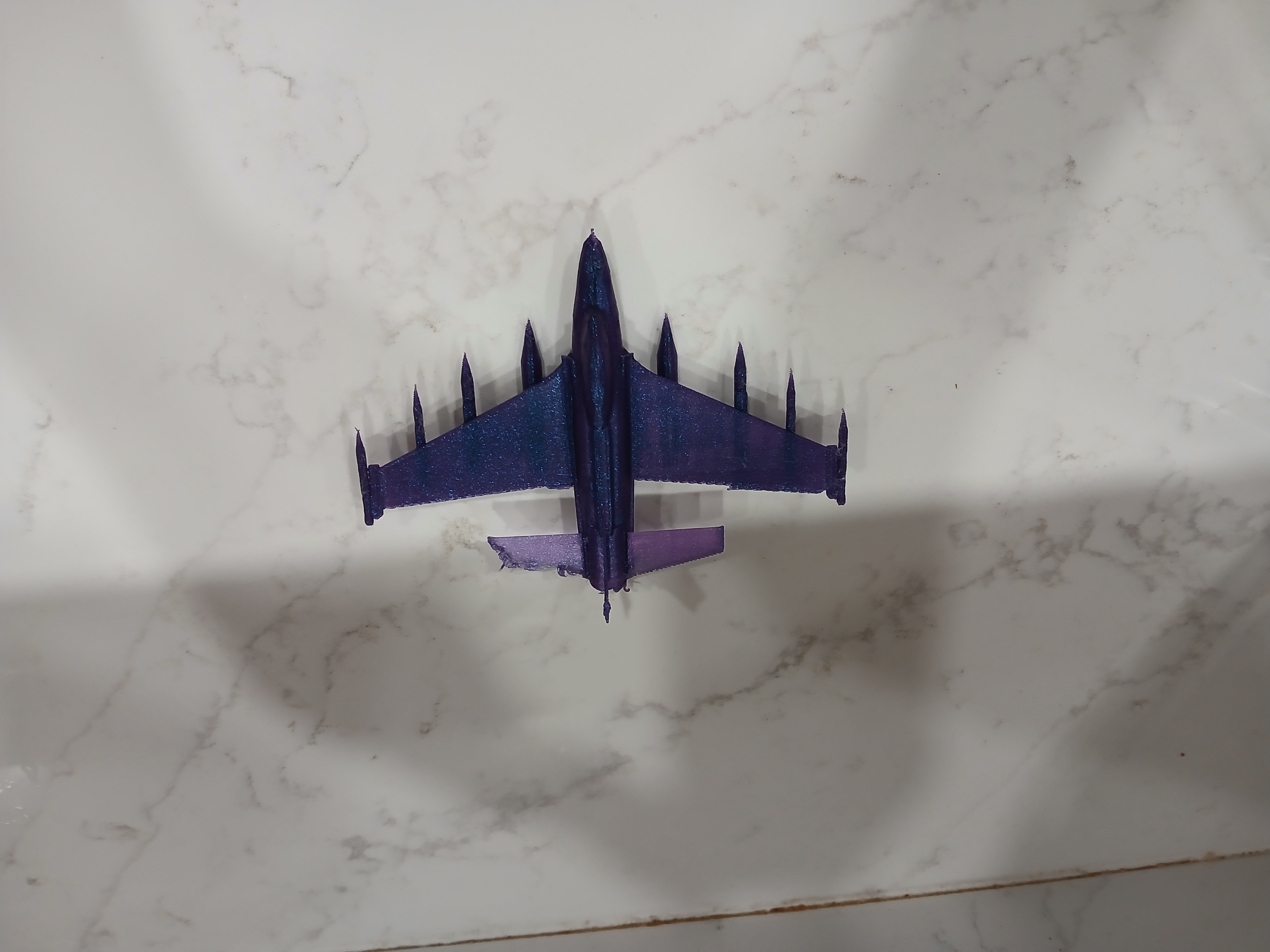 Mẫu F16 Fighter Jet đơn giản, in nhanh và dễ, phù hợp làm đồ trang trí hoặc đồ chơi. Khuyến nghị infill 20% và cần supports. Lưu ý: in càng nhỏ thì các fins càng mỏng, dễ gãy.