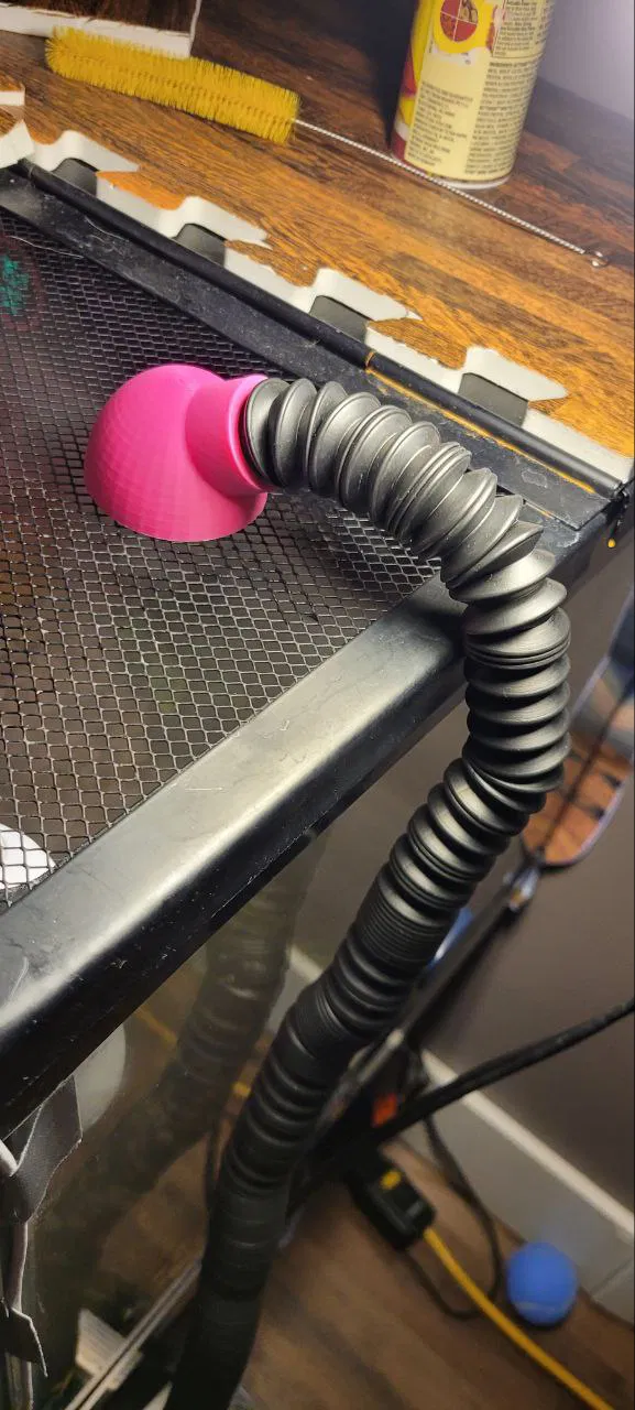 Đây là một món adapter cho hệ thống reptile fogger. Phần đáy có chừa chỗ để gắn magnets, giúp bạn hít lên nắp kim loại của bể và điều hướng luồng sương đi qua các lỗ.