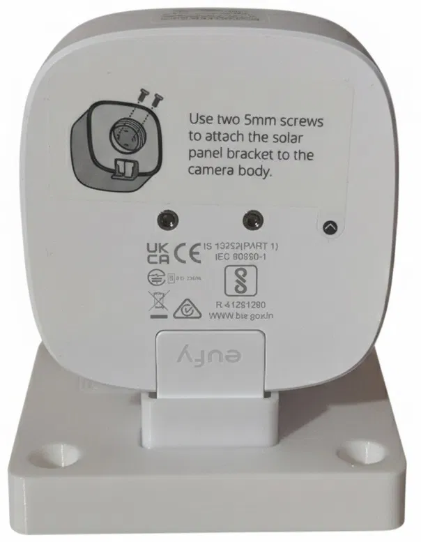 Cơ chế nhả 2 chốt (Dual-Pin-Entriegelungssystem): Để tháo camera, cần đưa đồng thời hai cây kẹp giấy (Büroklammern) vào các lỗ nhả nhỏ. Việc này cực khó với kẻ trộm, đặc biệt khi camera gắn cao trên tường nhà.