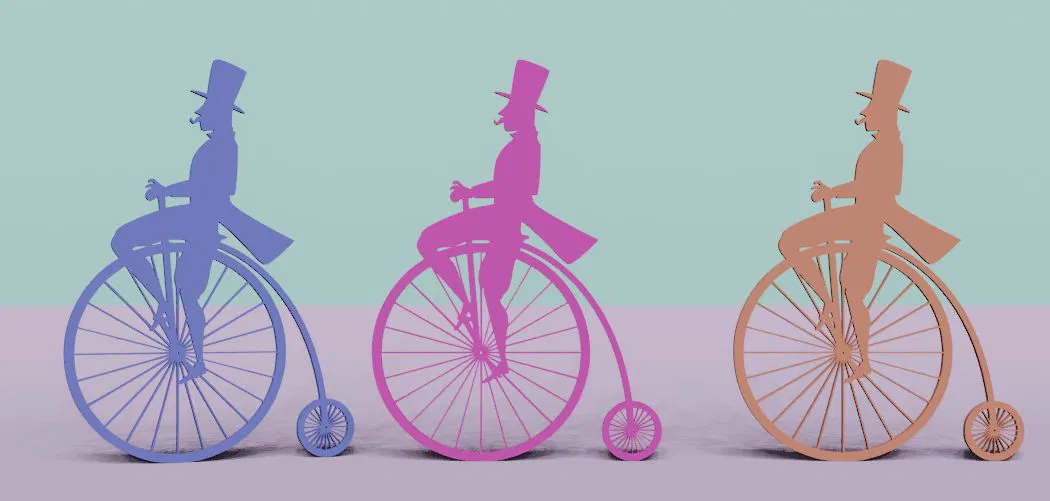 Mẫu Old high bicycle – xe đạp cao cổ kiểu cổ điển, hợp để trang trí nhà (home decor). Thông số in gợi ý: bed 60, nozzle 210, speed 50, layer 0.2; dùng với filament như PLA tùy máy.
