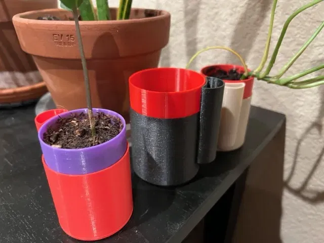 Tôi rất thích chậu mà tôi đã remix. Nhưng tôi muốn một vài thay đổi. Tôi thấy khó để in. Đáy quá nhỏ và các cạnh dốc. Có thể bị đổ khi in, đặc biệt là khi in lớn. Hơn nữa, khi bạn tháo chậu ra, nó cũng sẽ bị đổ. Tôi cũng muốn có thể xoay cây mà không cần thay đổi vị trí đổ đầy. Hy vọng mọi người sẽ thích. Kích thước in 80% là một kích thước đẹp để bắt đầu. In tốt ở tất cả các kích thước khác nhau. Rất tuyệt cho những cây nhỏ để bắt đầu.