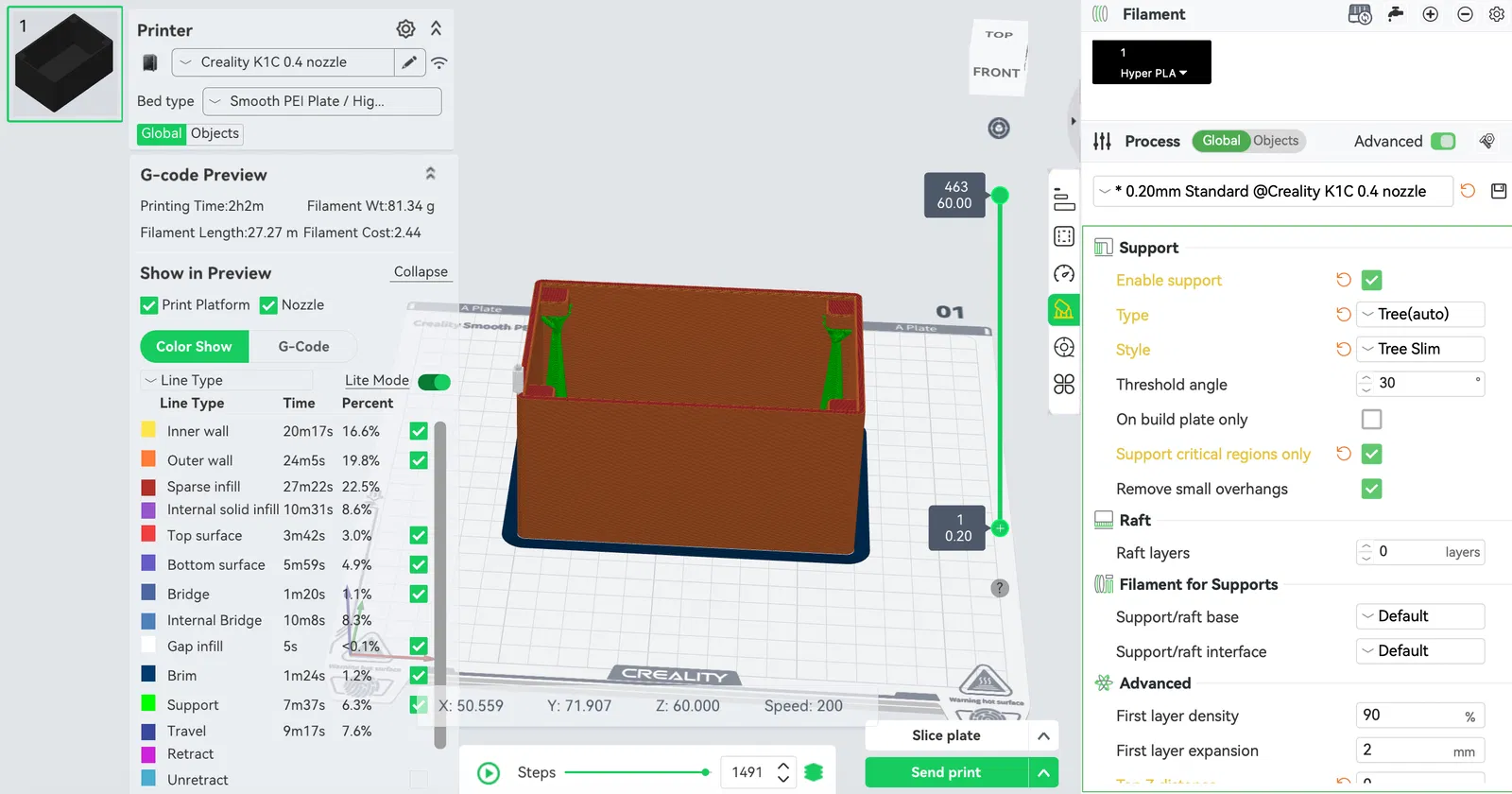 Mình khuyến nghị dùng supports khi in phần hộp.