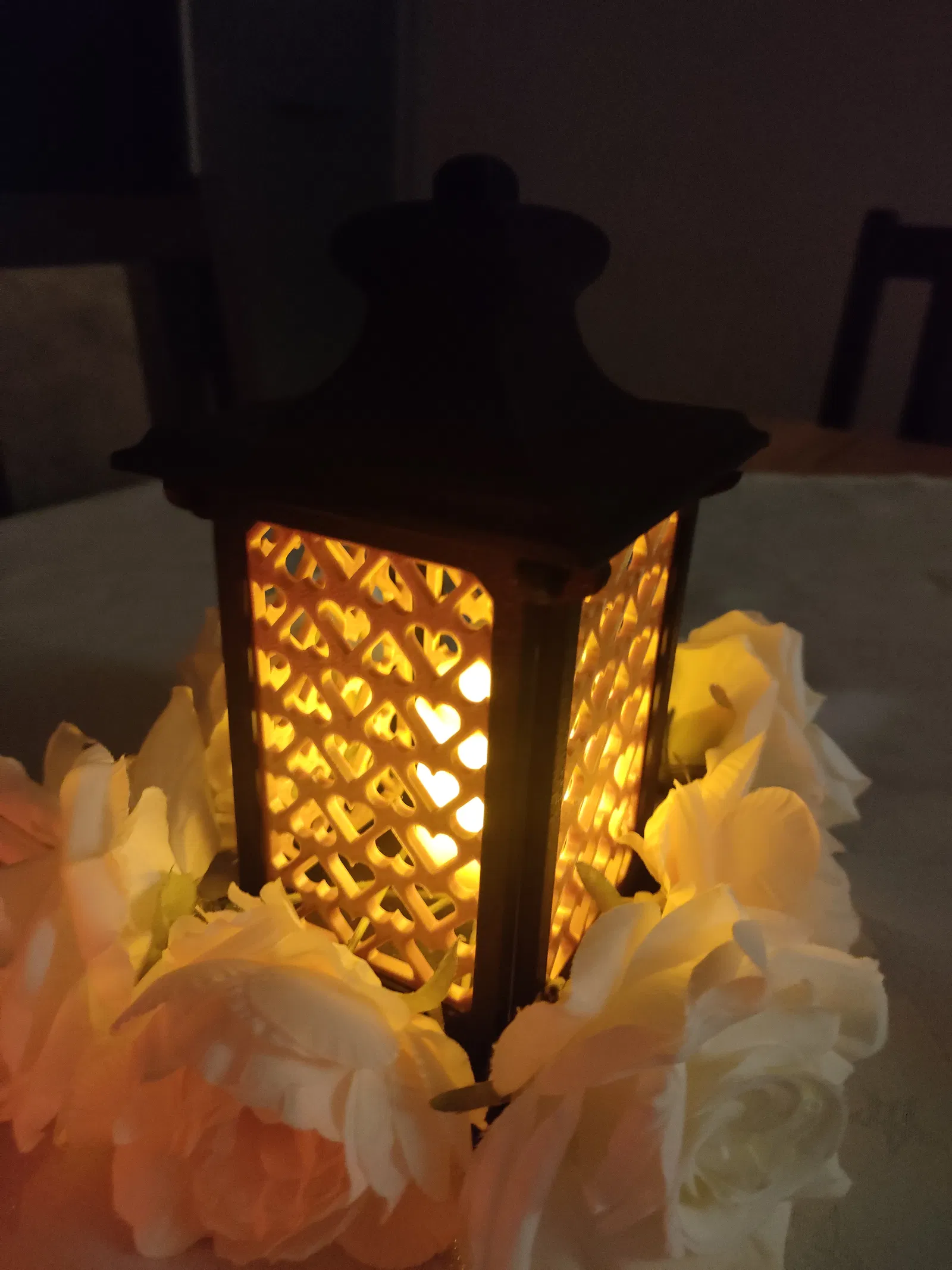 Mẫu đèn lồng chủ đề trái tim này mang phong cách thanh lịch, dùng để trang trí và chỉ dành cho nến LED. Với các mảng hông họa tiết trái tim tinh tế cùng dáng đèn lồng cổ điển, đèn tạo cảm giác ấm áp, lãng mạn – rất hợp cho Valentine, đám cưới, trang trí bàn tiệc hoặc làm đèn trang trí góc nhà.