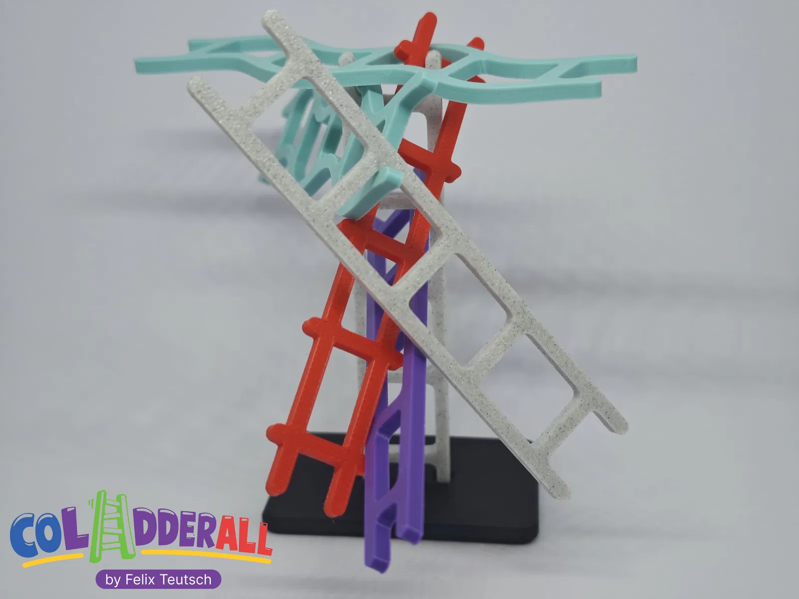 Coladderall là một trò chơi cân bằng vật lý dành cho từ 2 người chơi trở lên. Mỗi lượt, người chơi sẽ đặt thêm thang vào một “tòa tháp” đang cao dần, cố gắng xả hết số thang của mình mà không làm sập. Nếu tháp đổ, bạn phải gom tất cả những chiếc thang nào chạm mặt bàn — và màn hỗn loạn lại tiếp tục. Luật đơn giản, ván nhanh, đảm bảo cười banh nóc.